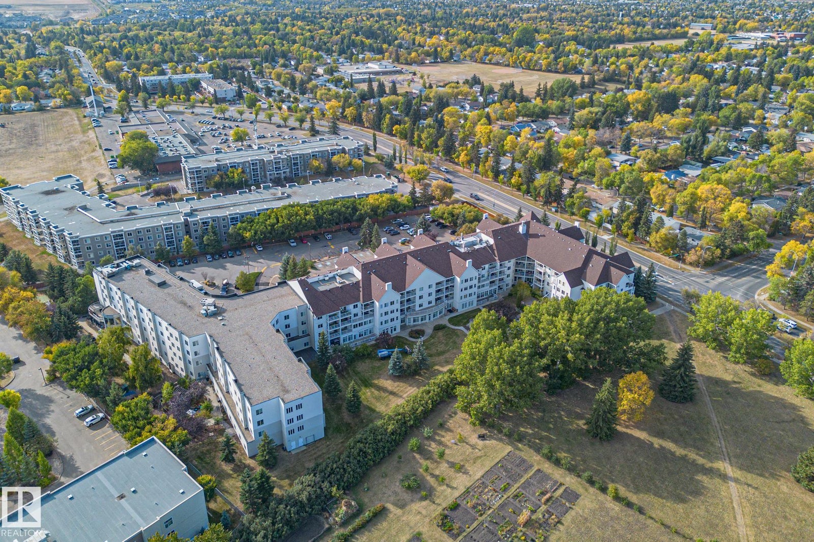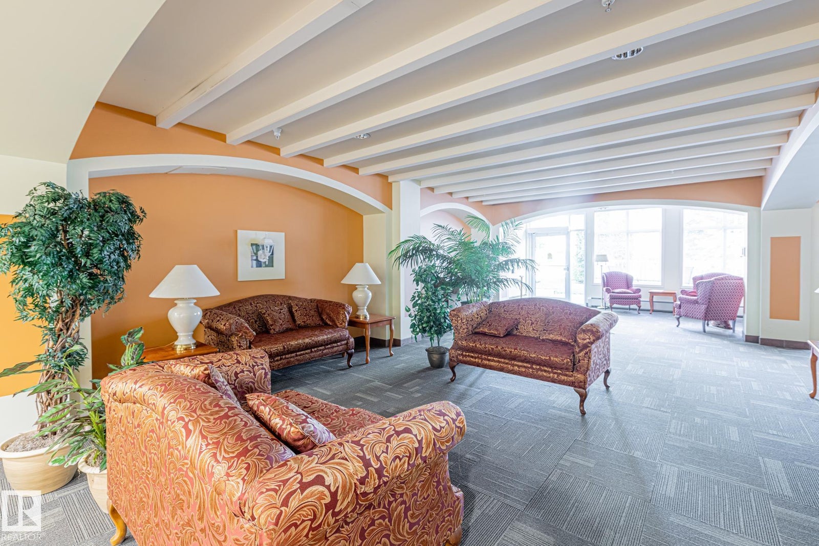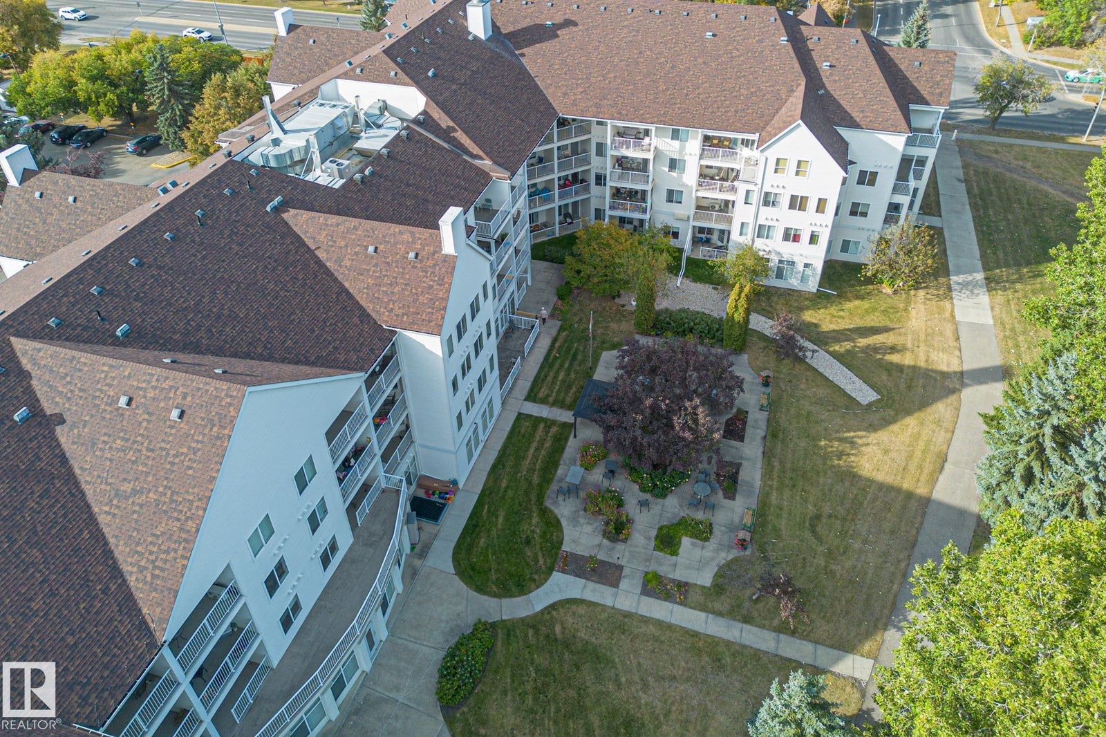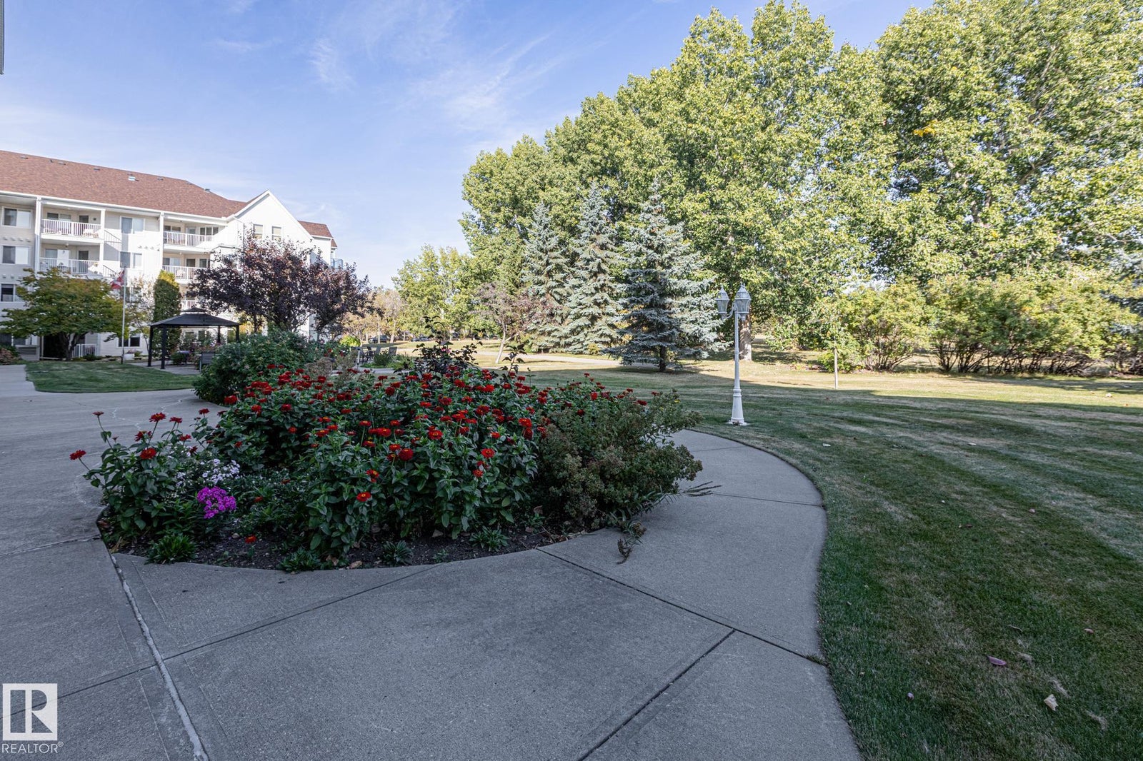 Have you been on the fence about moving into an adult community? Well here is your sign! Not only are you able to own your place you have such a variety of amenities without ever leaving. Multiple sitting areas for socializing to the gym, sewing room, pool table, libraries and others! There is truly something for everyone here. Plus beautiful outdoor spaces surrounded by flowers. Inside this 2 bedroom 813 SQFT home is just as lovely. With a large full laundry room with plenty of storage space. A full bathroom that has space to accommodate mobility aids and a heat lamp. The ample open kitchen looks over the main living space and tons of windows letting all the sun in. The primary suite leaves room for a king-size bed and bureaus. A second bedroom is perfect for an office space. Enjoy your morning coffee on your private balcony overlooking St. Albert. Close to shops, restaurants, walking trails and more. This is the adult living dream!