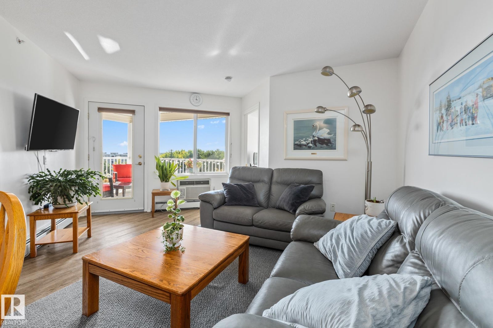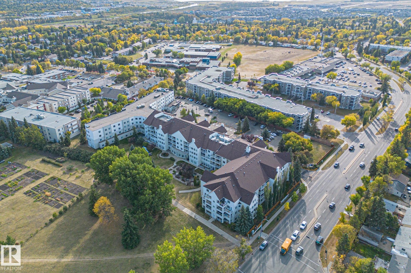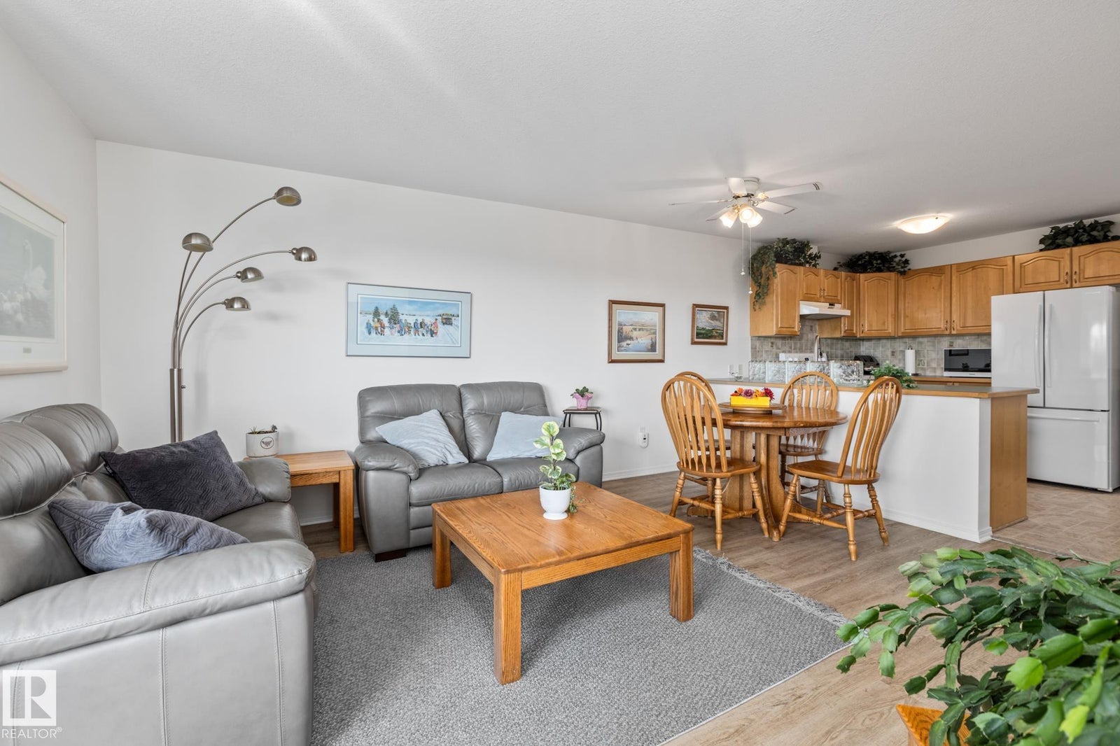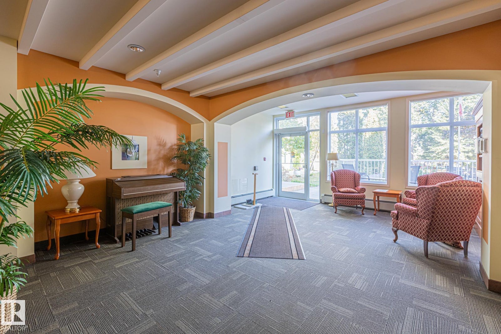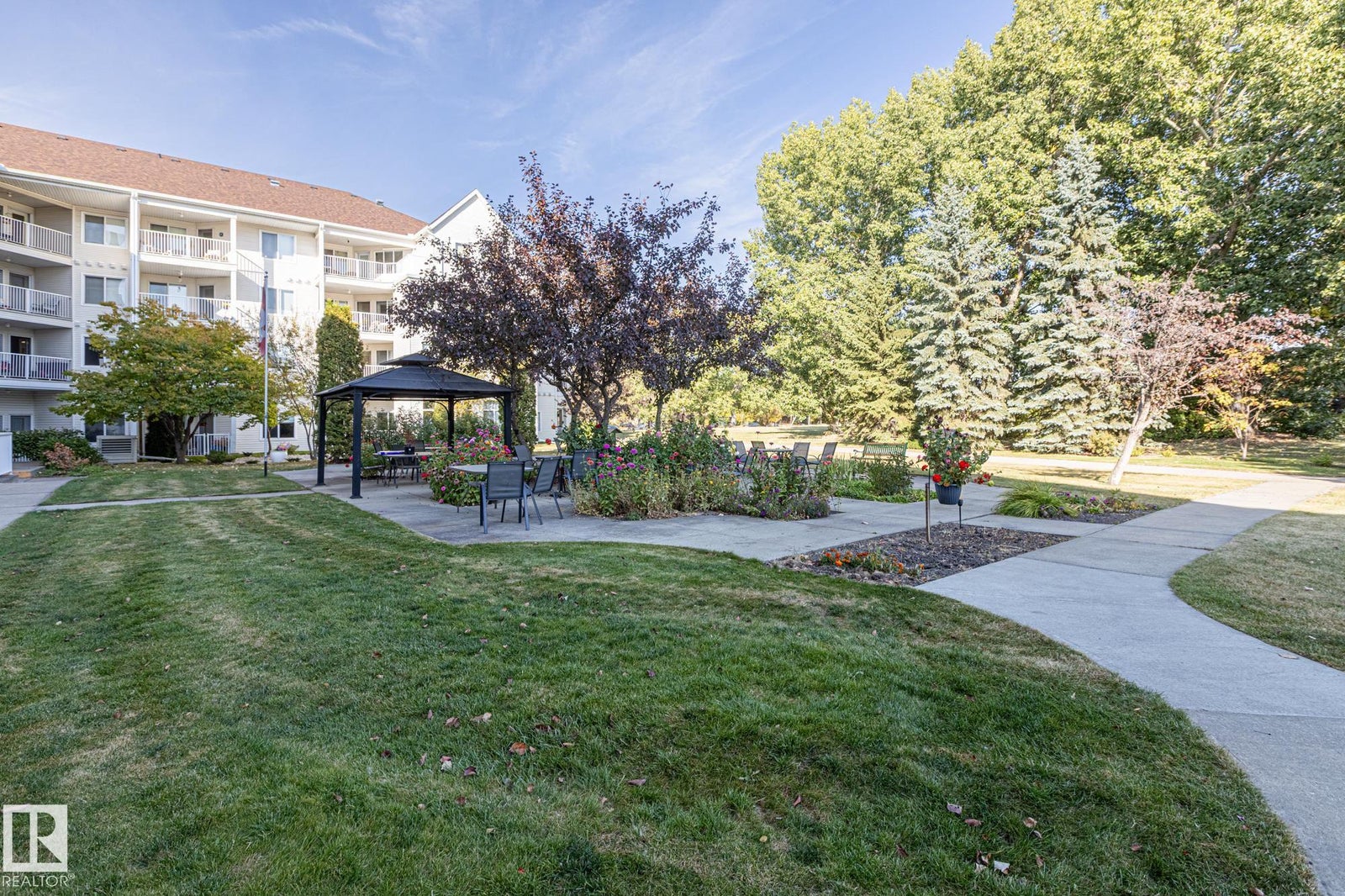 Have you been on the fence about moving into an adult community? Well here is your sign! Not only are you able to own your place you have such a variety of amenities without ever leaving. Multiple sitting areas for socializing to the gym, sewing room, pool table, libraries and others! There is truly something for everyone here. Plus beautiful outdoor spaces surrounded by flowers. Inside this 2 bedroom 813 SQFT home is just as lovely. With a large full laundry room with plenty of storage space. A full bathroom that has space to accommodate mobility aids and a heat lamp. The ample open kitchen looks over the main living space and tons of windows letting all the sun in. The primary suite leaves room for a king-size bed and bureaus. A second bedroom is perfect for an office space. Enjoy your morning coffee on your private balcony overlooking St. Albert. Close to shops, restaurants, walking trails and more. This is the adult living dream!