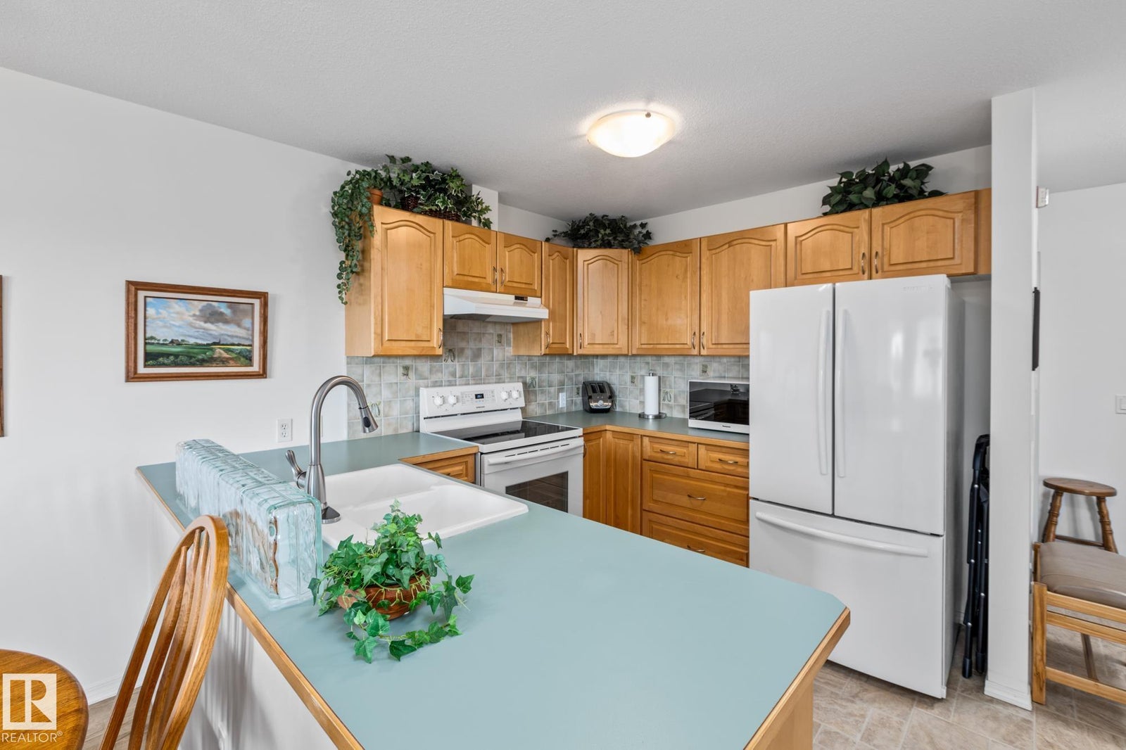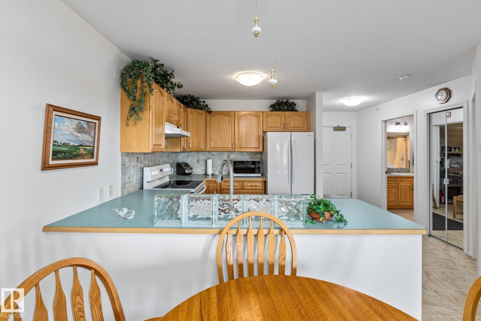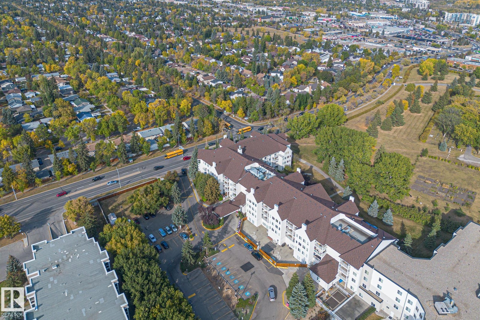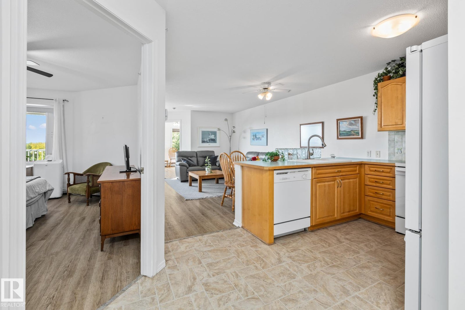 Have you been on the fence about moving into an adult community? Well here is your sign! Not only are you able to own your place you have such a variety of amenities without ever leaving. Multiple sitting areas for socializing to the gym, sewing room, pool table, libraries and others! There is truly something for everyone here. Plus beautiful outdoor spaces surrounded by flowers. Inside this 2 bedroom 813 SQFT home is just as lovely. With a large full laundry room with plenty of storage space. A full bathroom that has space to accommodate mobility aids and a heat lamp. The ample open kitchen looks over the main living space and tons of windows letting all the sun in. The primary suite leaves room for a king-size bed and bureaus. A second bedroom is perfect for an office space. Enjoy your morning coffee on your private balcony overlooking St. Albert. Close to shops, restaurants, walking trails and more. This is the adult living dream!