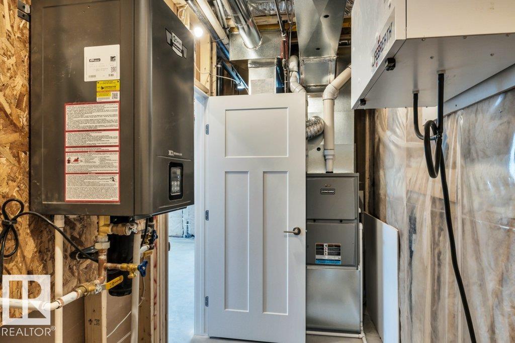 Welcome to this beautifully crafted home by Stonegate Developments, where quality and attention to detail shine throughout. From the grand front entrance, you’ll appreciate the elegant design and refined finishes. The open-concept main floor is perfect for entertaining, featuring a stylish kitchen with full-height cabinetry that leads to a deck with sleek aluminum railings. Glass panels on the staircase add a modern touch. Upstairs offers three spacious bedrooms, two bathrooms, a walk-in laundry room, and a large family room with a built-in desk—ideal for work or study. The luxurious primary suite includes a spa-inspired ensuite with a custom tiled shower. Additional highlights include quartz countertops, 8’ solid core doors, stainless steel appliances, a built-in electric fireplace, and luxury vinyl plank flooring throughout. Situated on a pie-shaped lot in a quiet cul-de-sac, this home also features a double attached garage with a floor drain and side entry. Comes with full Alberta New Home Warranty.
