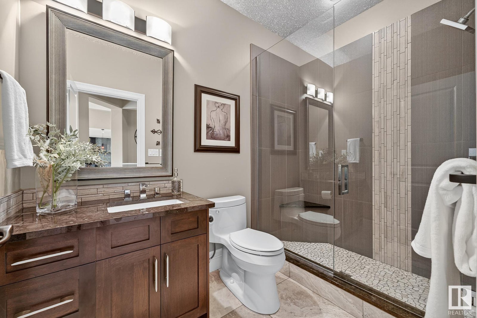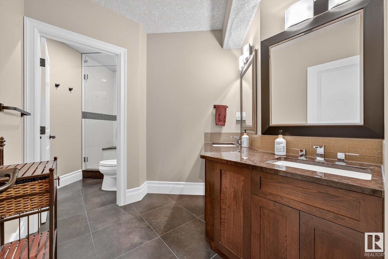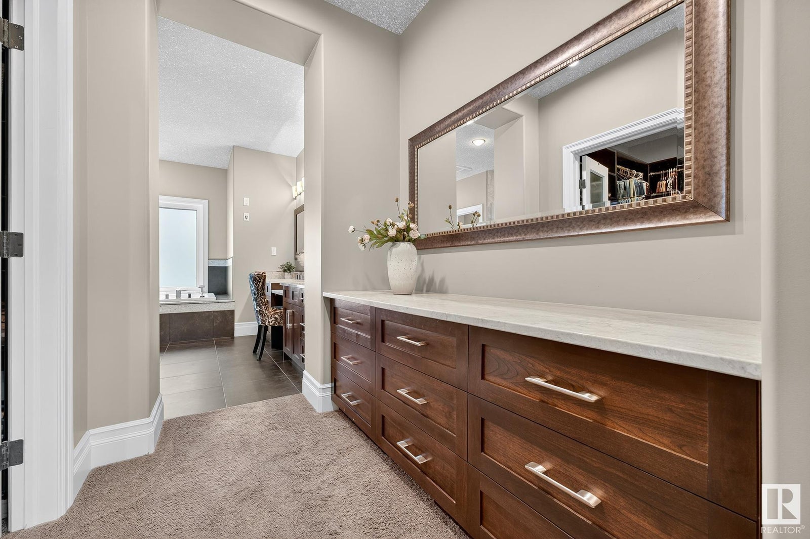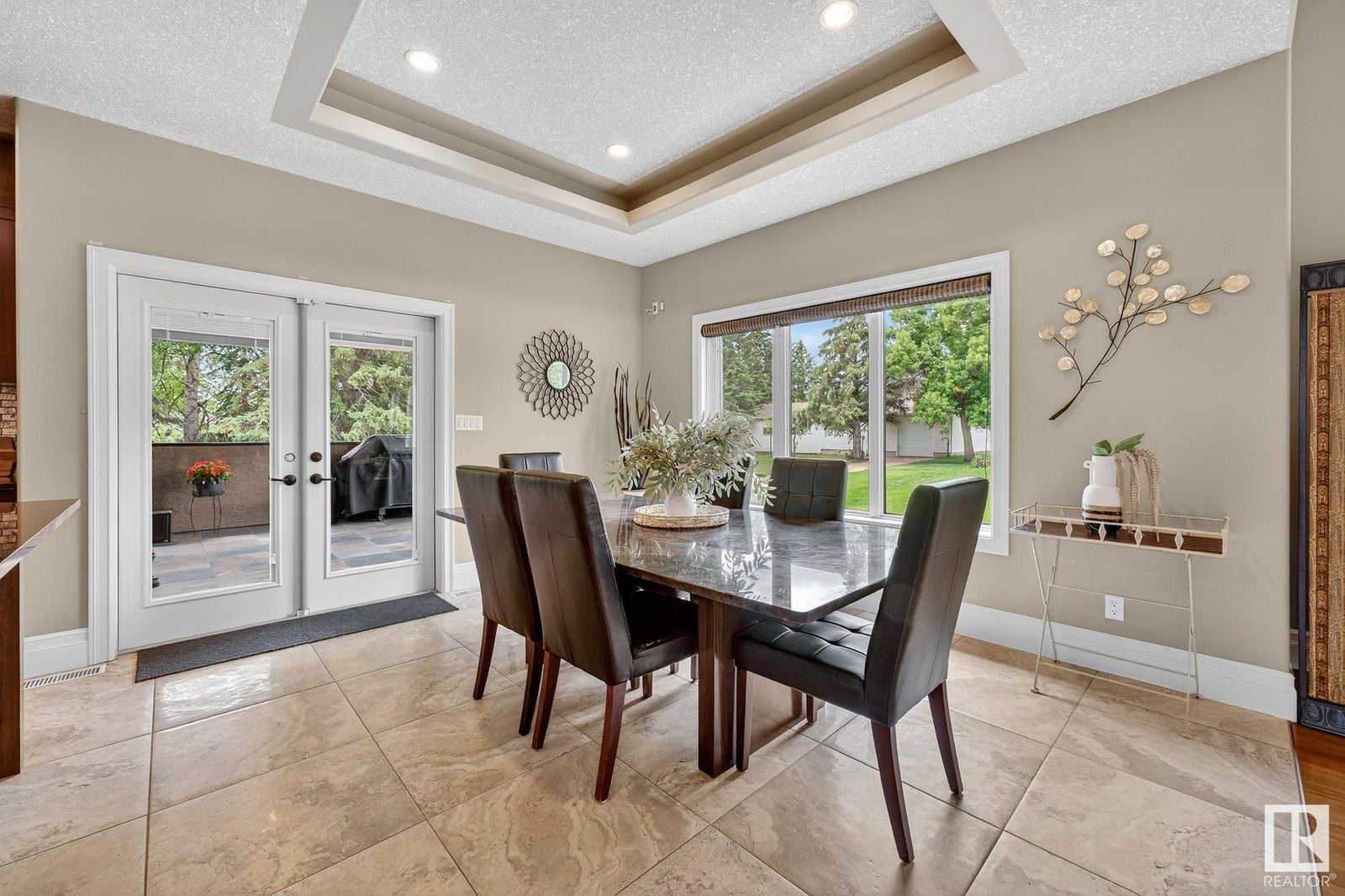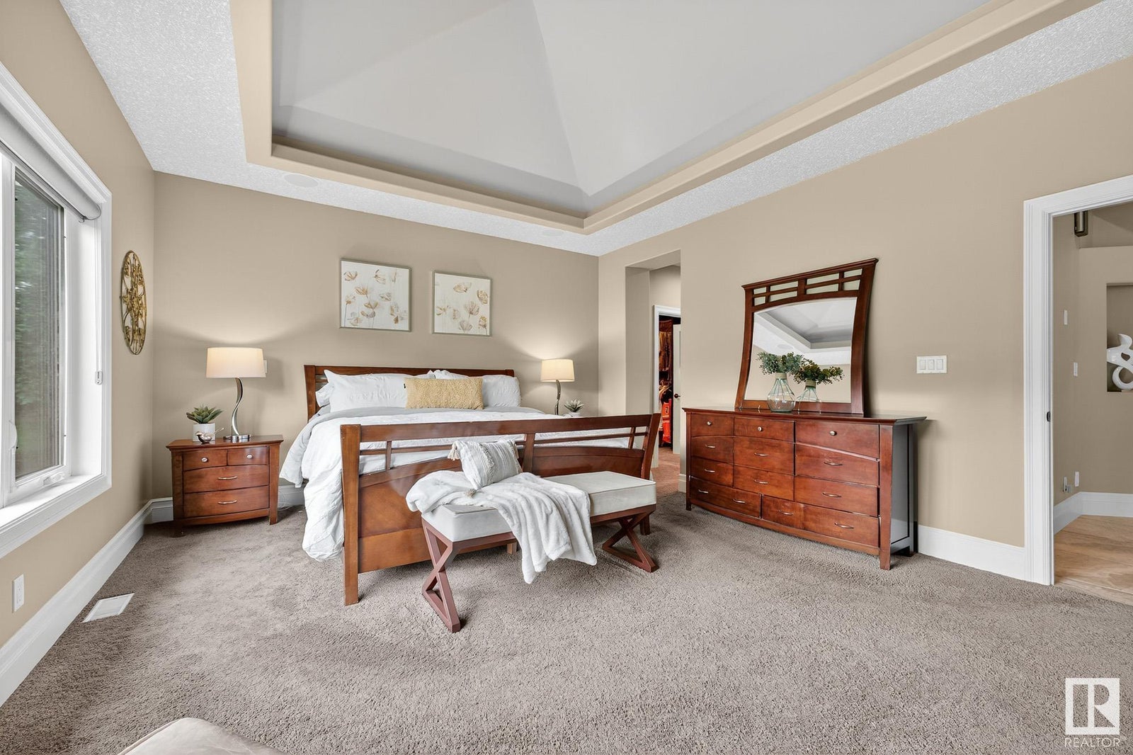Welcome to Namao Ridge! This custom-built bungalow, situated on 1.67 acres, offers upscale living with unparalleled privacy. A dramatic curved staircase set against a stone feature wall, tray ceilings, and wall-to-wall windows elevate the open-concept main level. Enjoy a chef-inspired kitchen with rich cabinetry, granite countertops, and premium appliances, open to the living and dining areas, featuring a striking stone fireplace. The main floor includes the spacious primary suite, a second bedroom, and a formal dining room with architectural detailing. Downstairs features 3 bedrooms, a full bath, a half bath, a home gym, and a spacious rec room with room for a pool table. The show-stopping bar includes custom cabinetry, tile backsplash, and seating. A dedicated theatre room above the 4-car garage is perfect for movie nights. The 1,824sqft heated shop is finished with power, making it ideal for trades, storage, or your dream workspace. A covered patio and mature trees round out this exceptional property.