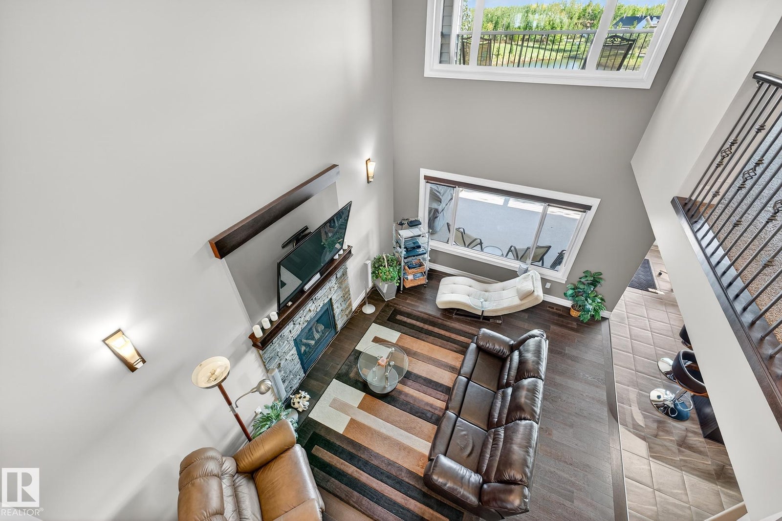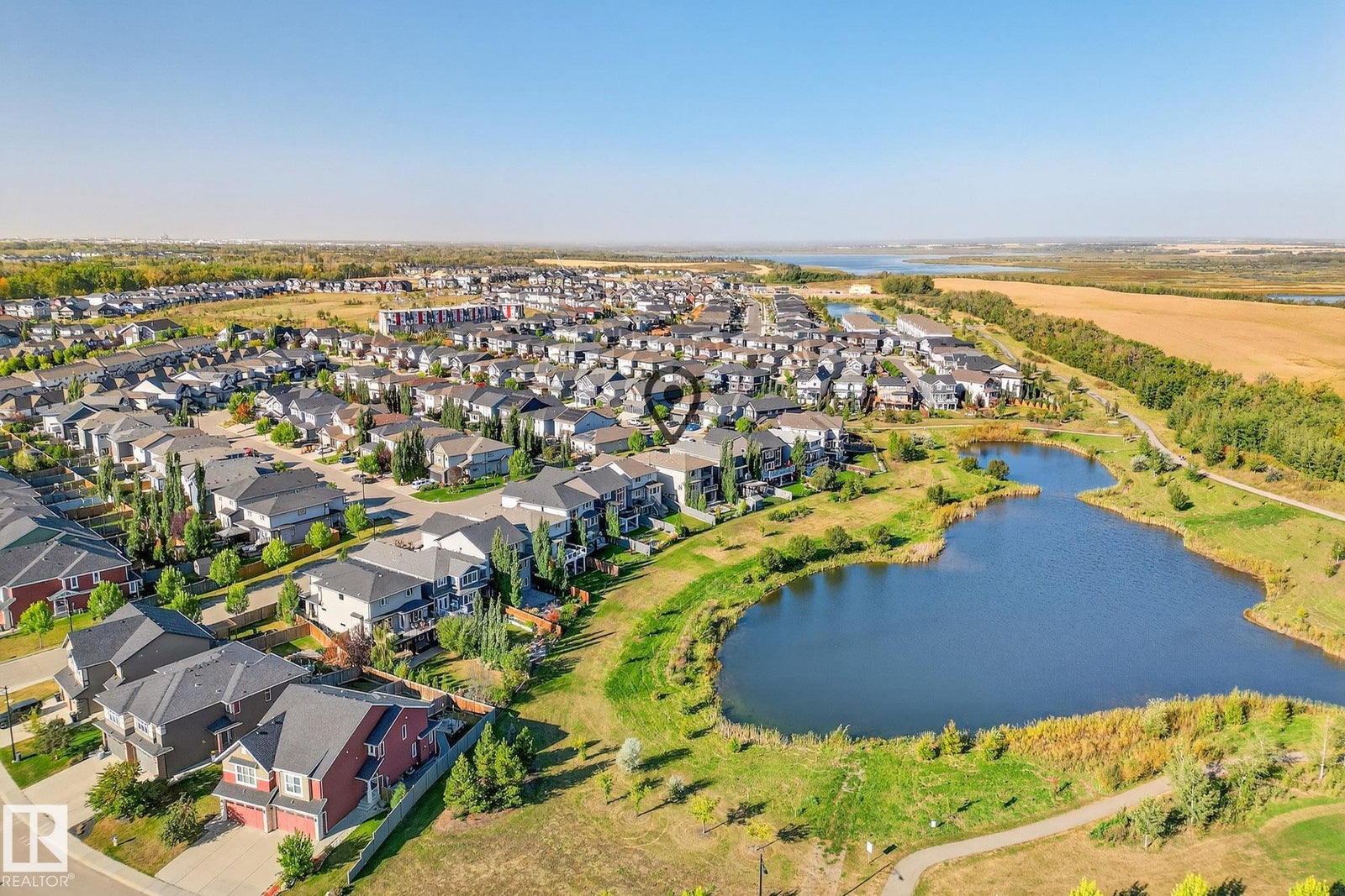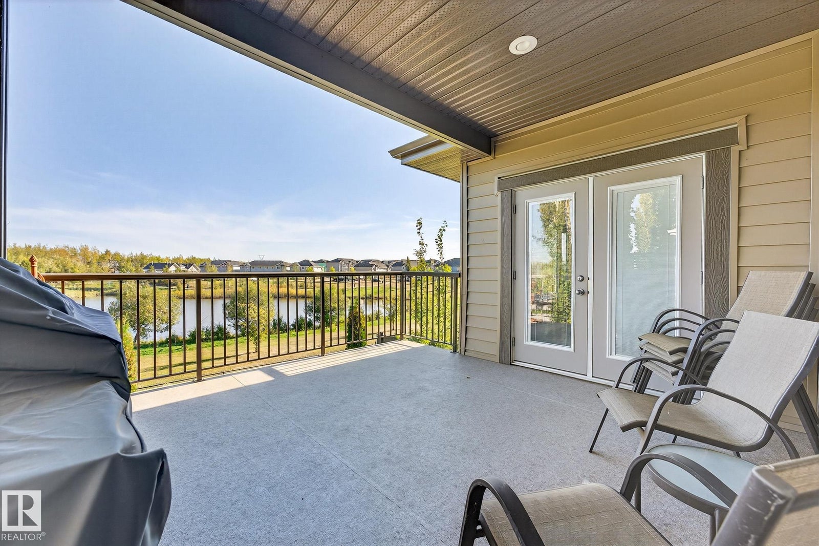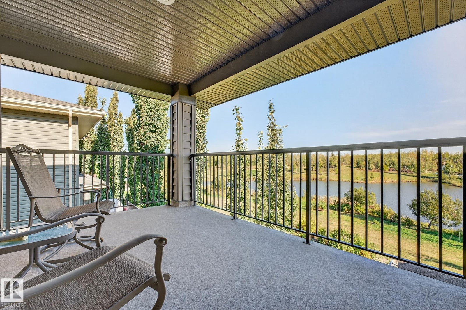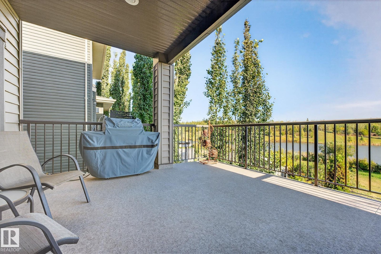 Welcome to this stunning 2-storey walkout in the desirable community of Trumpeter, offering rare lake views right from your backyard. The main floor is highlighted by soaring ceilings in the open-to-above living room, anchored by a stone fireplace and large windows that flood the space with natural light. The gourmet kitchen features granite counters, rich cabinetry, stainless steel appliances, a spacious island, and direct access to the dining area and deck overlooking the water. Upstairs, you’ll find 3 bedrooms, including a serene primary retreat with a private balcony, walk-in closet, and spa-inspired ensuite. The unfinished walkout basement leads to a beautifully landscaped yard with a stone patio, perfect for evenings around the fire while enjoying peaceful lake scenery. This property combines elegant interiors with a natural setting, creating a home that is both welcoming and impressive, while the location offers quick access to nearby parks, trails, and the conveniences of St. Albert and Edmonton.