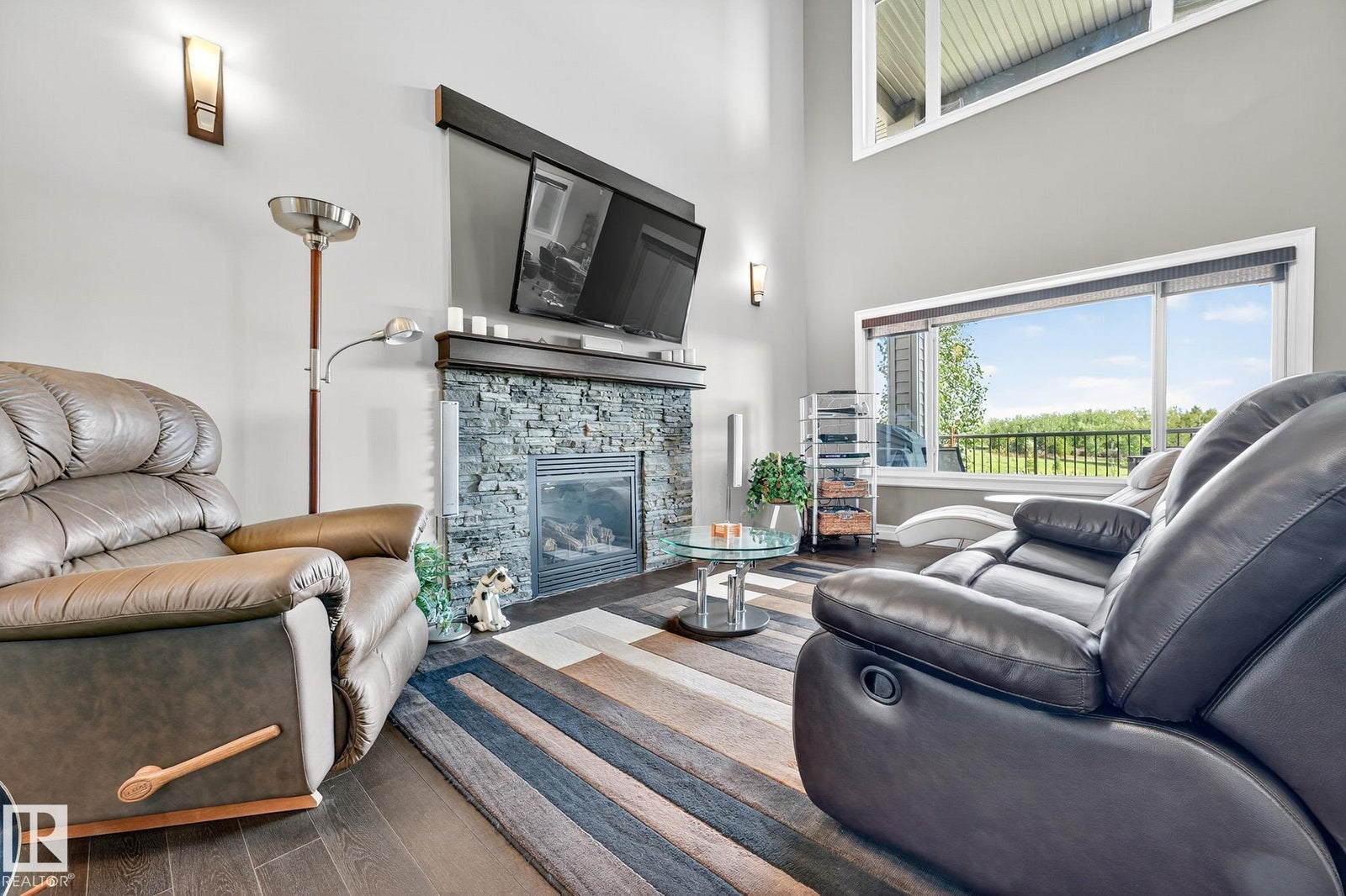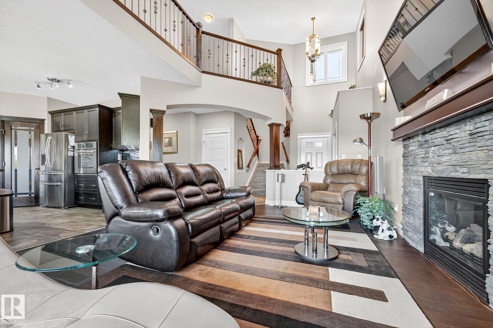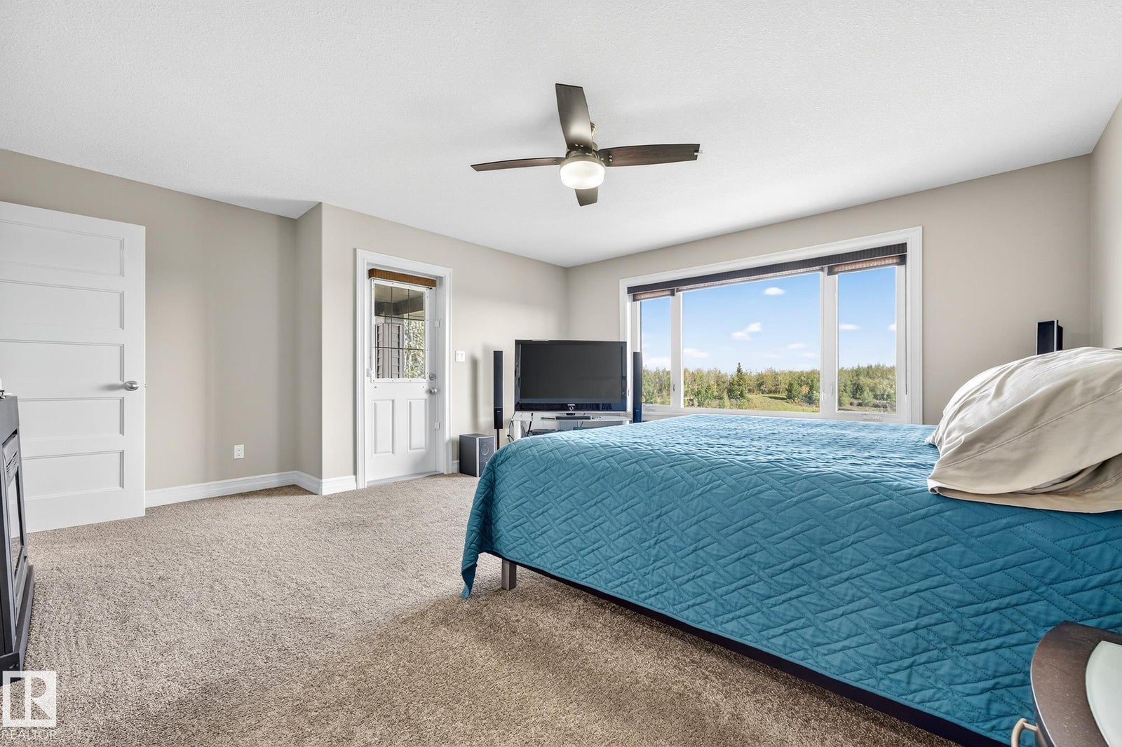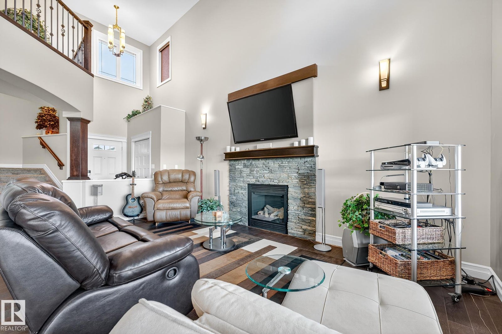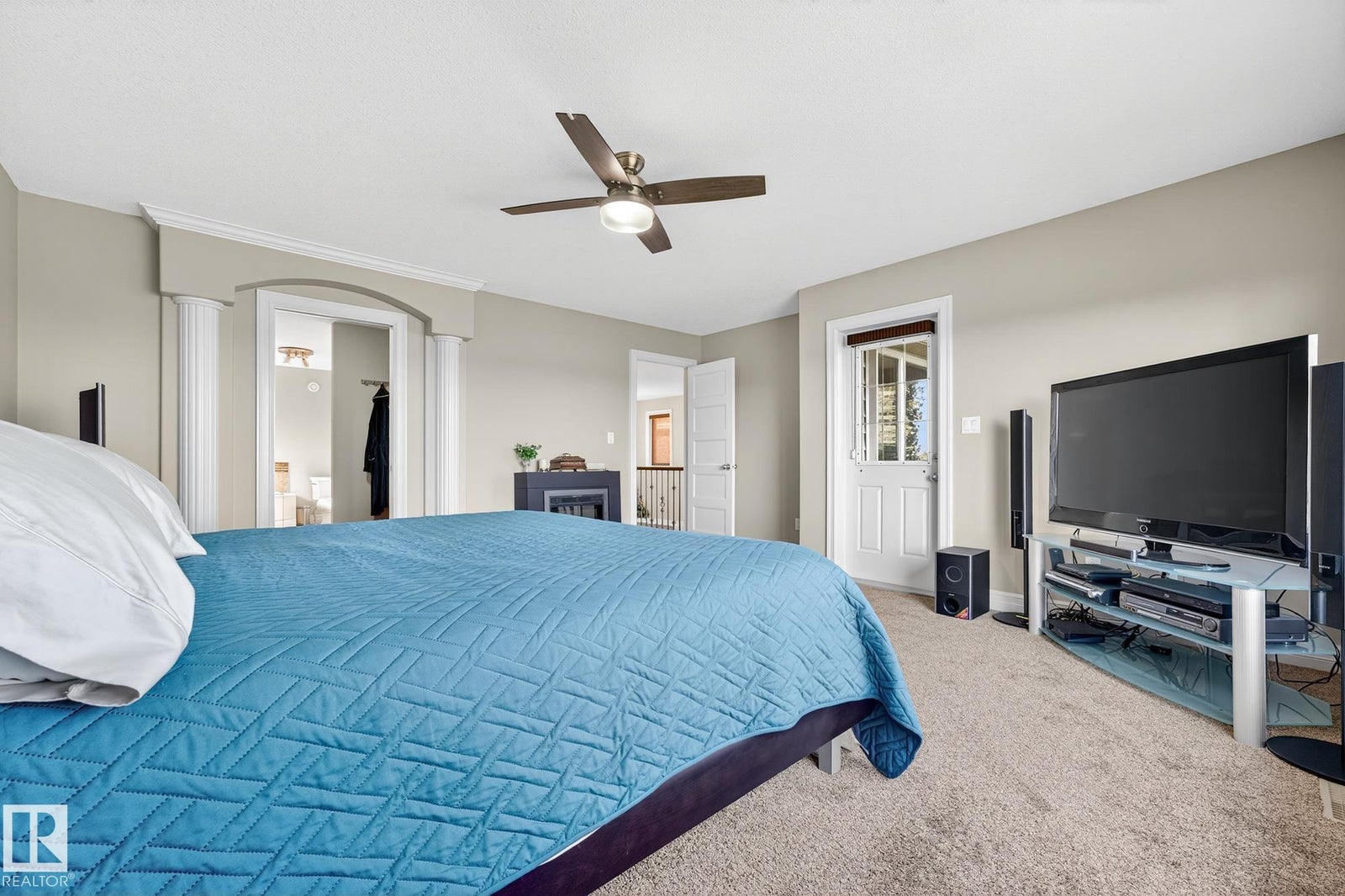 Welcome to this stunning 2-storey walkout in the desirable community of Trumpeter, offering rare lake views right from your backyard. The main floor is highlighted by soaring ceilings in the open-to-above living room, anchored by a stone fireplace and large windows that flood the space with natural light. The gourmet kitchen features granite counters, rich cabinetry, stainless steel appliances, a spacious island, and direct access to the dining area and deck overlooking the water. Upstairs, you’ll find 3 bedrooms, including a serene primary retreat with a private balcony, walk-in closet, and spa-inspired ensuite. The unfinished walkout basement leads to a beautifully landscaped yard with a stone patio, perfect for evenings around the fire while enjoying peaceful lake scenery. This property combines elegant interiors with a natural setting, creating a home that is both welcoming and impressive, while the location offers quick access to nearby parks, trails, and the conveniences of St. Albert and Edmonton.