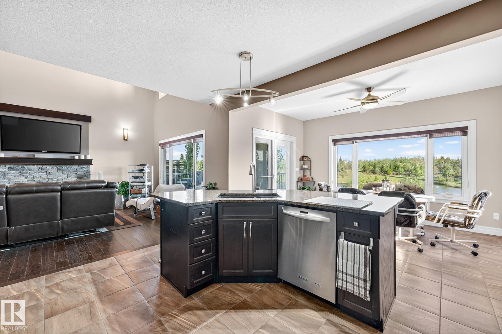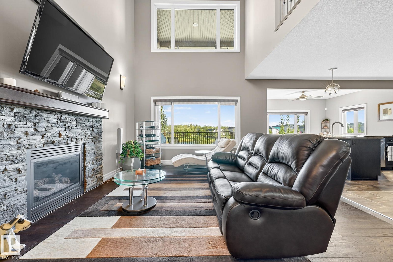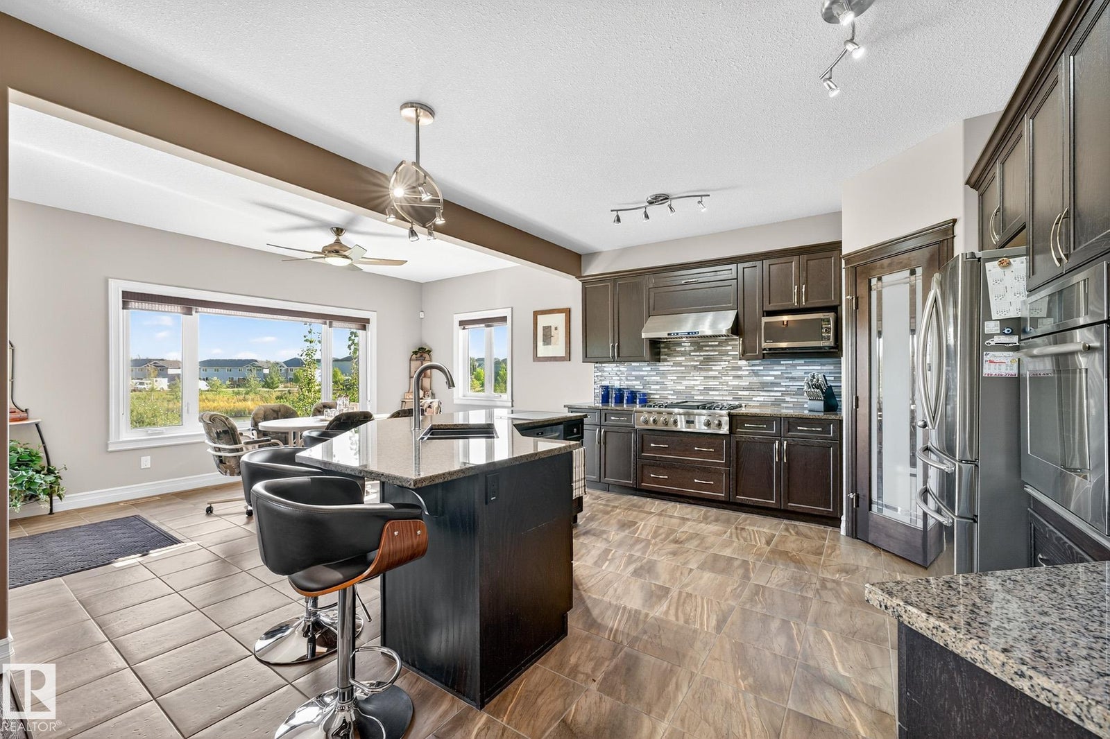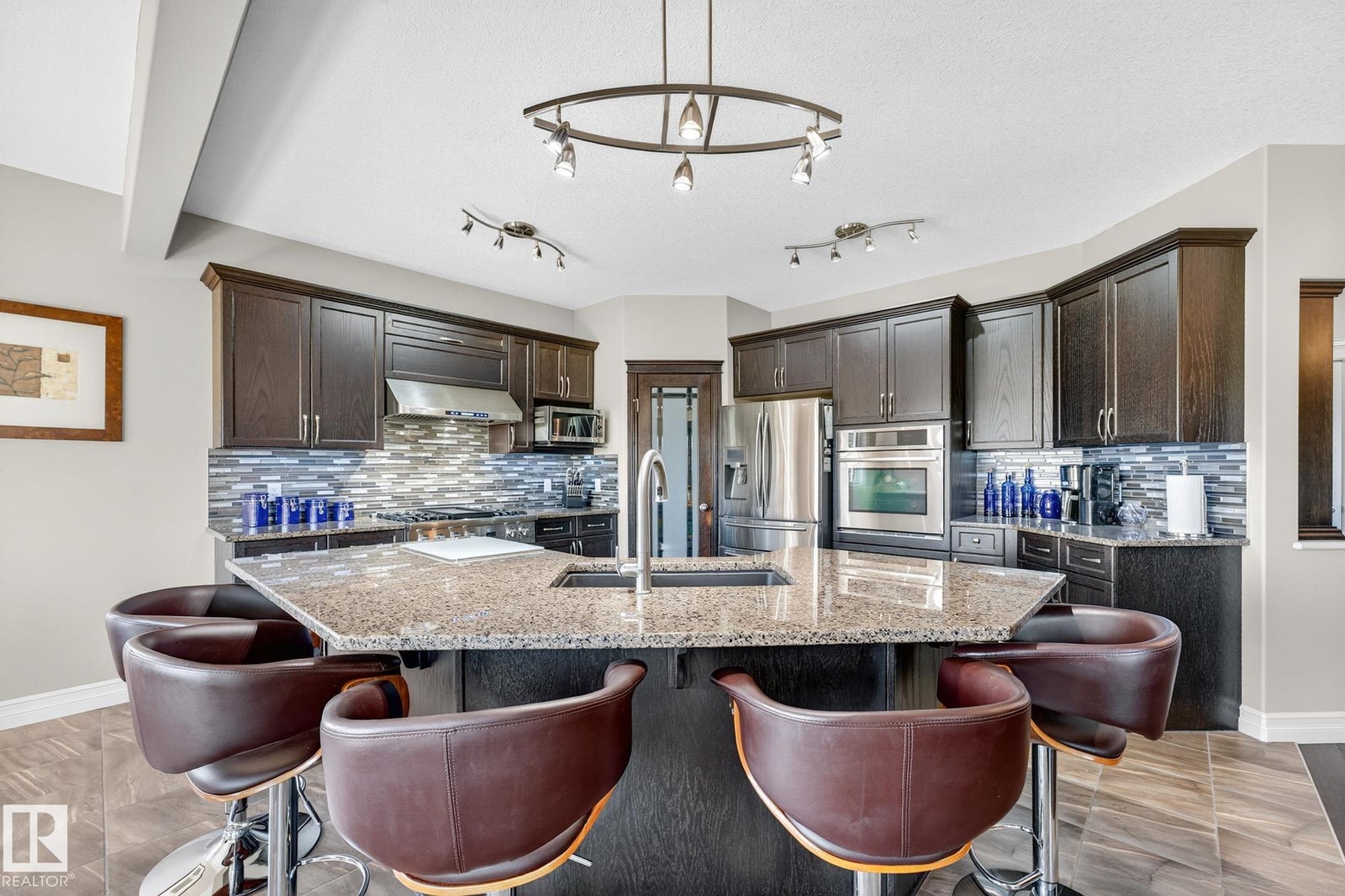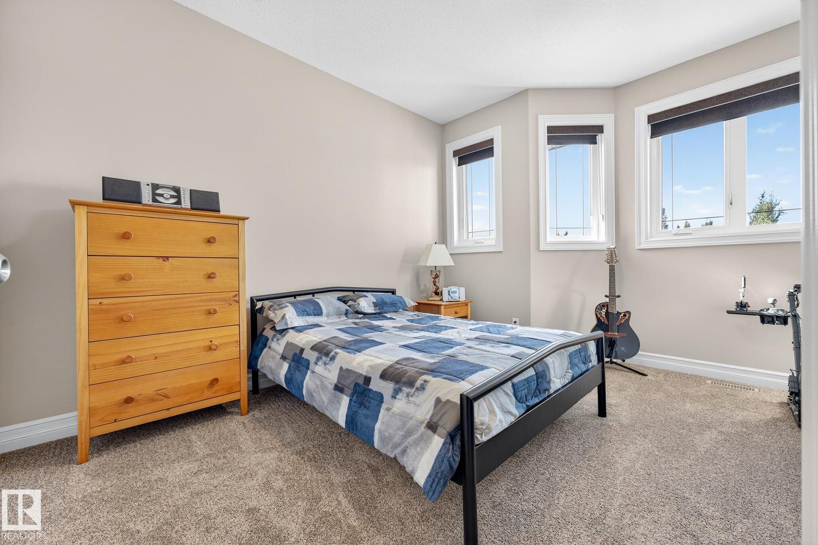 Welcome to this stunning 2-storey walkout in the desirable community of Trumpeter, offering rare lake views right from your backyard. The main floor is highlighted by soaring ceilings in the open-to-above living room, anchored by a stone fireplace and large windows that flood the space with natural light. The gourmet kitchen features granite counters, rich cabinetry, stainless steel appliances, a spacious island, and direct access to the dining area and deck overlooking the water. Upstairs, you’ll find 3 bedrooms, including a serene primary retreat with a private balcony, walk-in closet, and spa-inspired ensuite. The unfinished walkout basement leads to a beautifully landscaped yard with a stone patio, perfect for evenings around the fire while enjoying peaceful lake scenery. This property combines elegant interiors with a natural setting, creating a home that is both welcoming and impressive, while the location offers quick access to nearby parks, trails, and the conveniences of St. Albert and Edmonton.