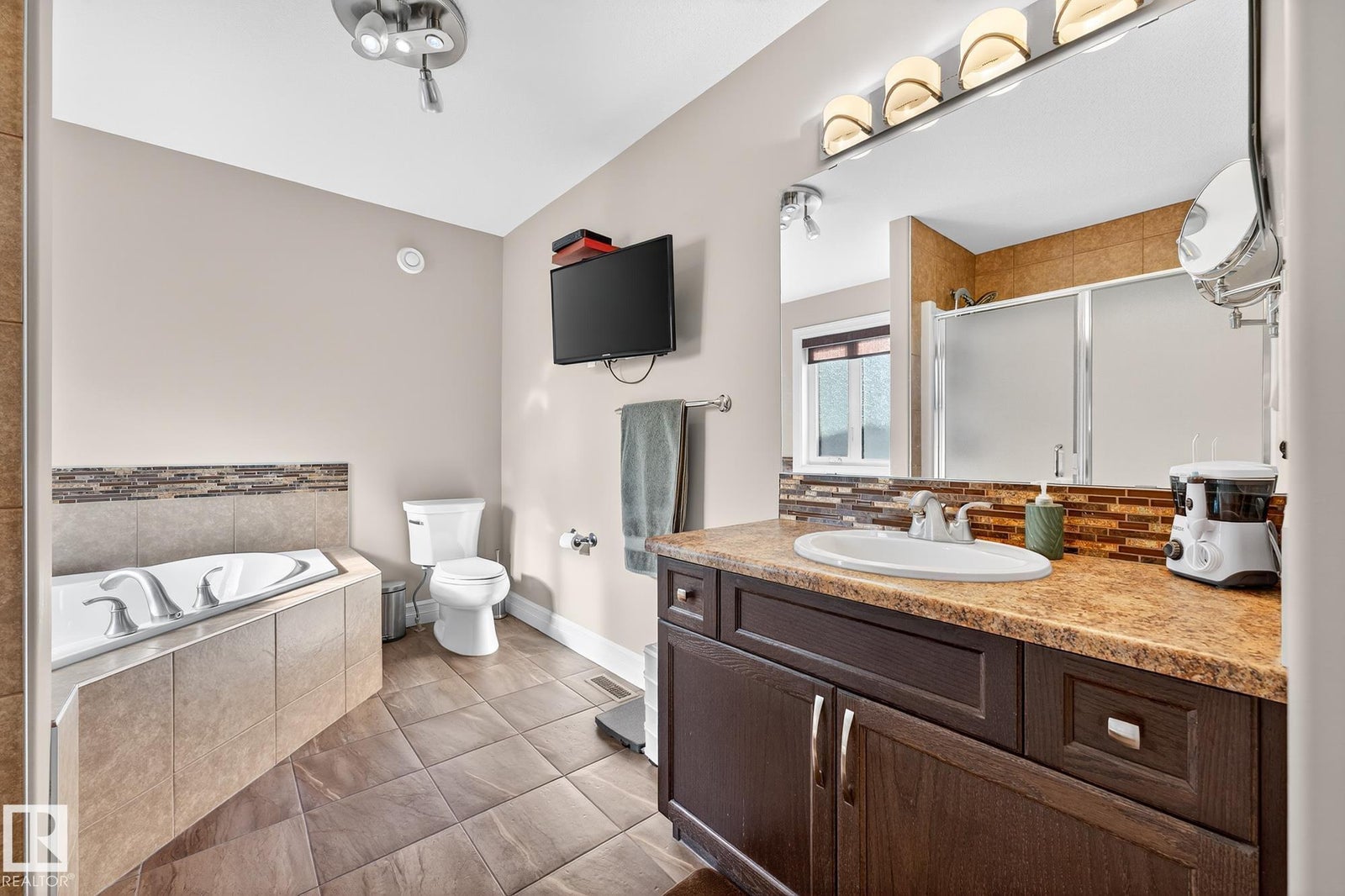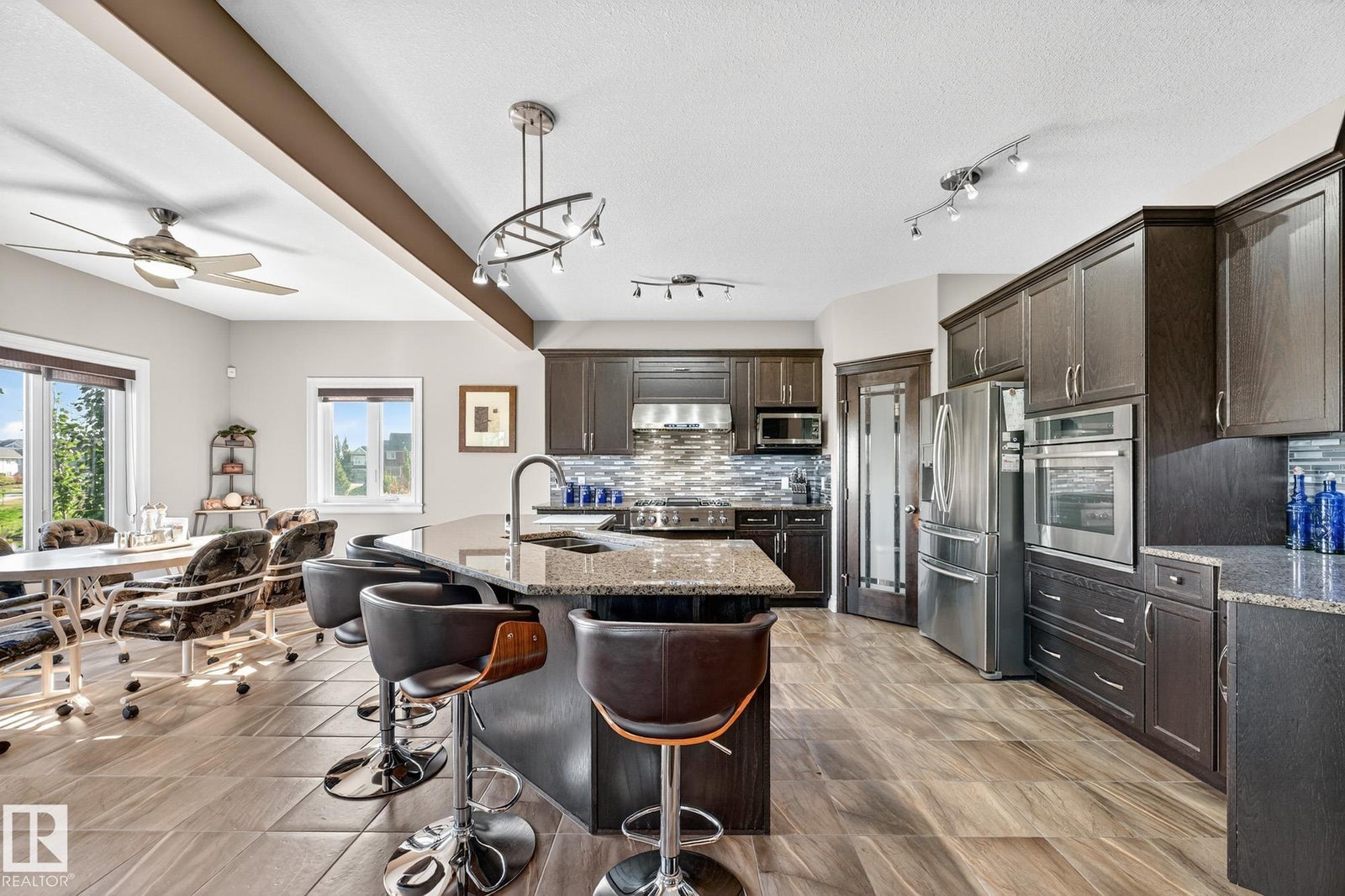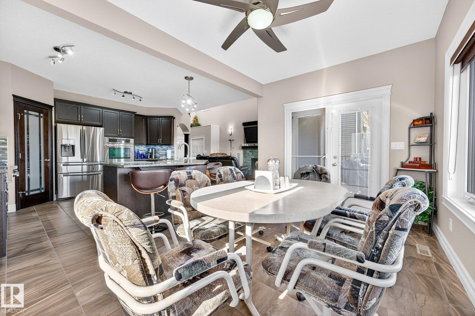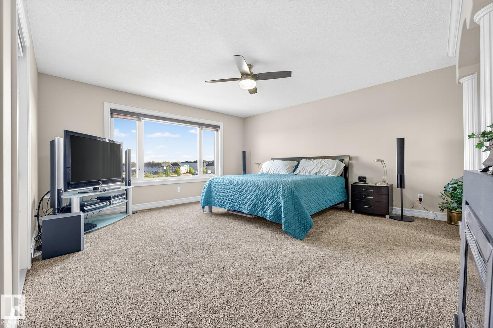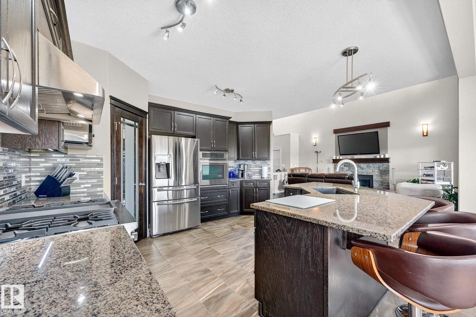 Welcome to this stunning 2-storey walkout in the desirable community of Trumpeter, offering rare lake views right from your backyard. The main floor is highlighted by soaring ceilings in the open-to-above living room, anchored by a stone fireplace and large windows that flood the space with natural light. The gourmet kitchen features granite counters, rich cabinetry, stainless steel appliances, a spacious island, and direct access to the dining area and deck overlooking the water. Upstairs, you’ll find 3 bedrooms, including a serene primary retreat with a private balcony, walk-in closet, and spa-inspired ensuite. The unfinished walkout basement leads to a beautifully landscaped yard with a stone patio, perfect for evenings around the fire while enjoying peaceful lake scenery. This property combines elegant interiors with a natural setting, creating a home that is both welcoming and impressive, while the location offers quick access to nearby parks, trails, and the conveniences of St. Albert and Edmonton.