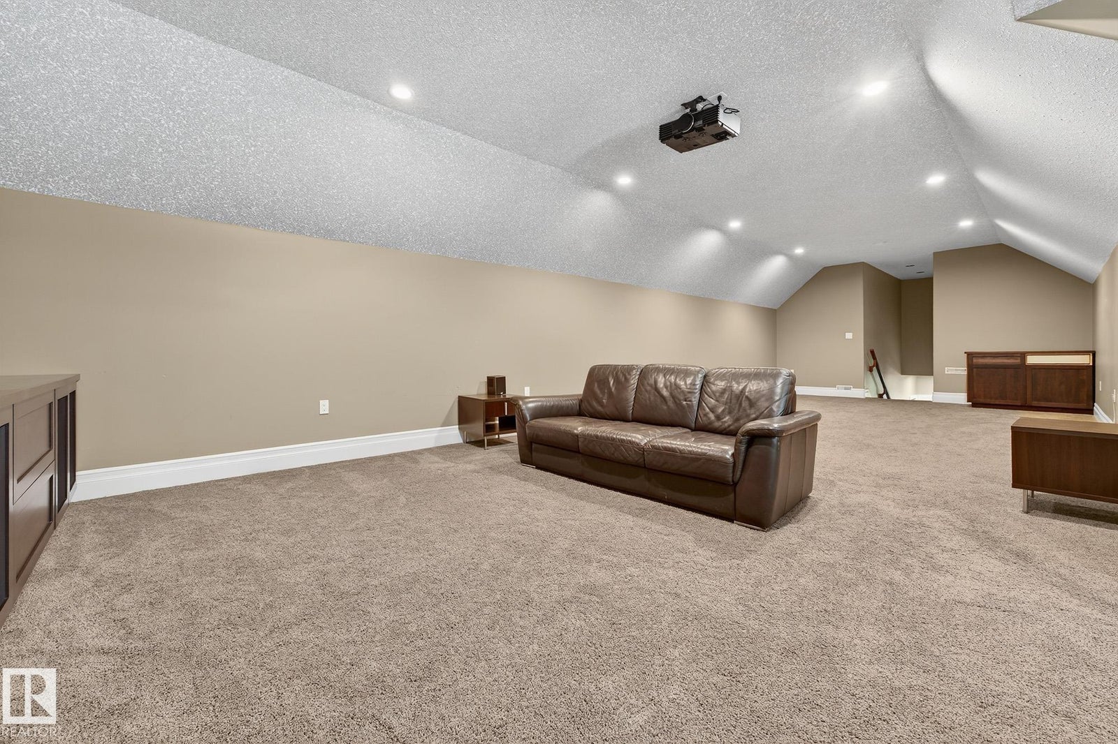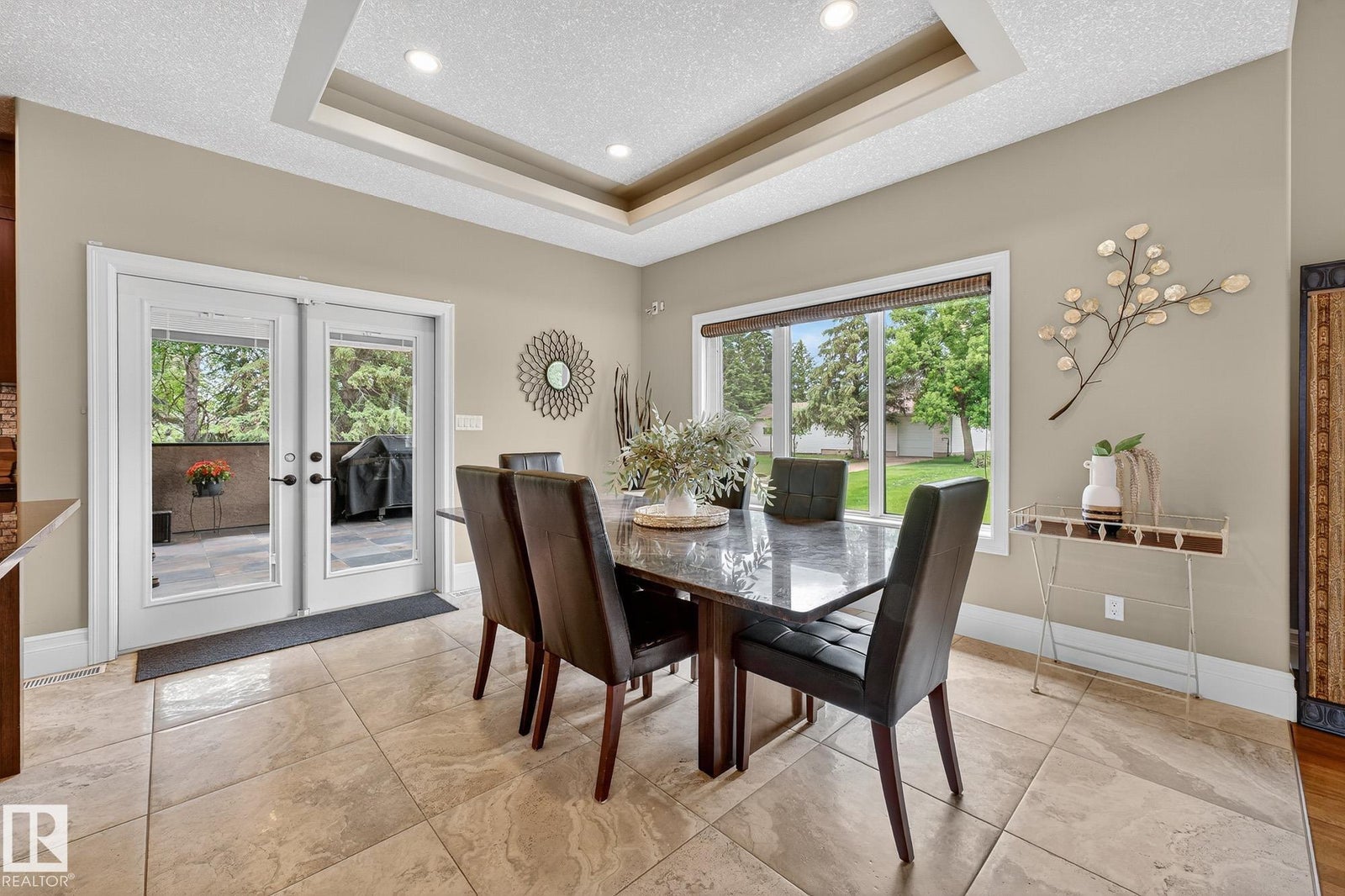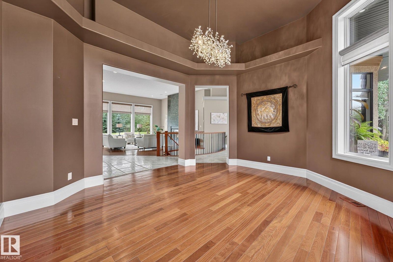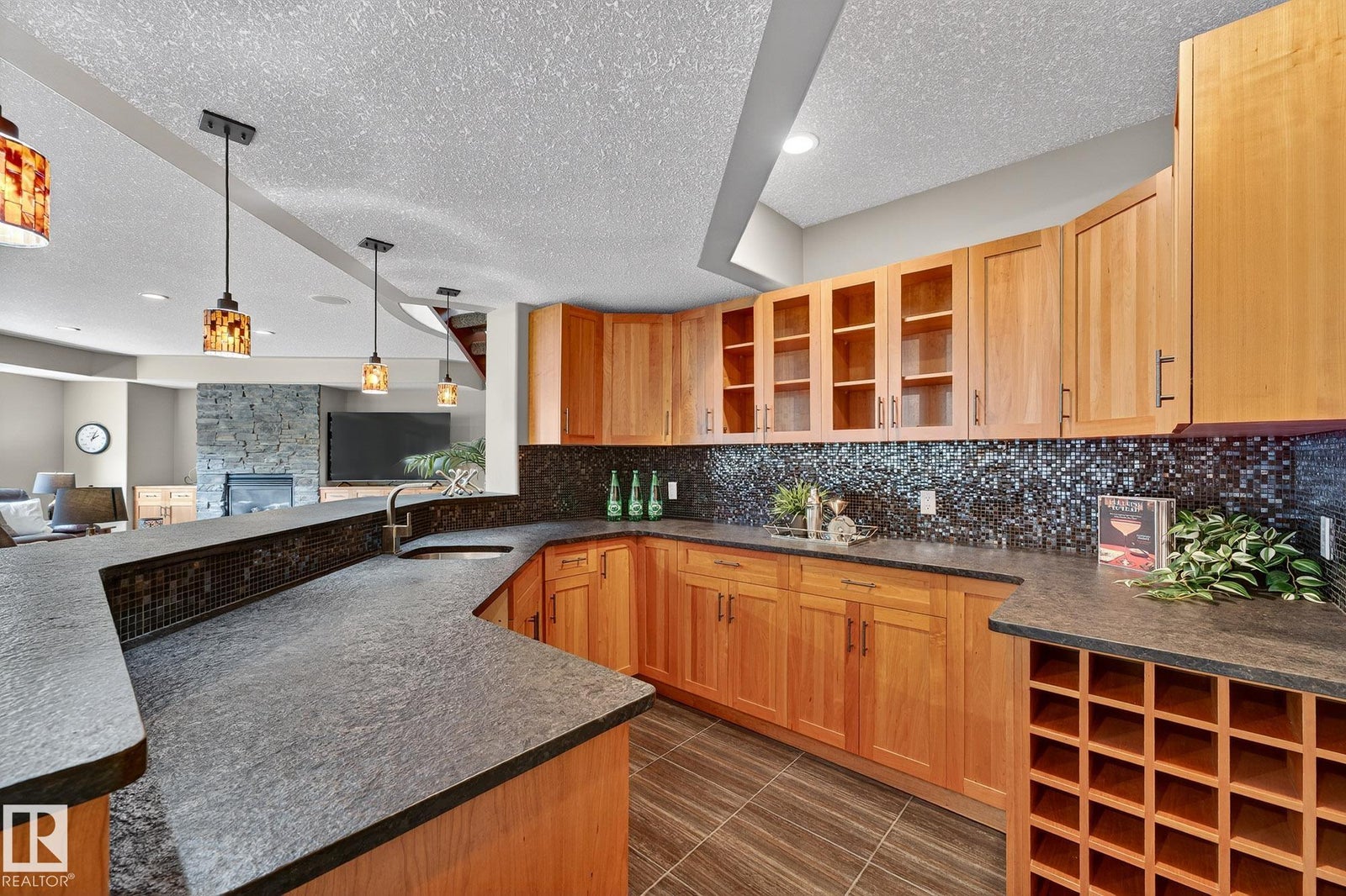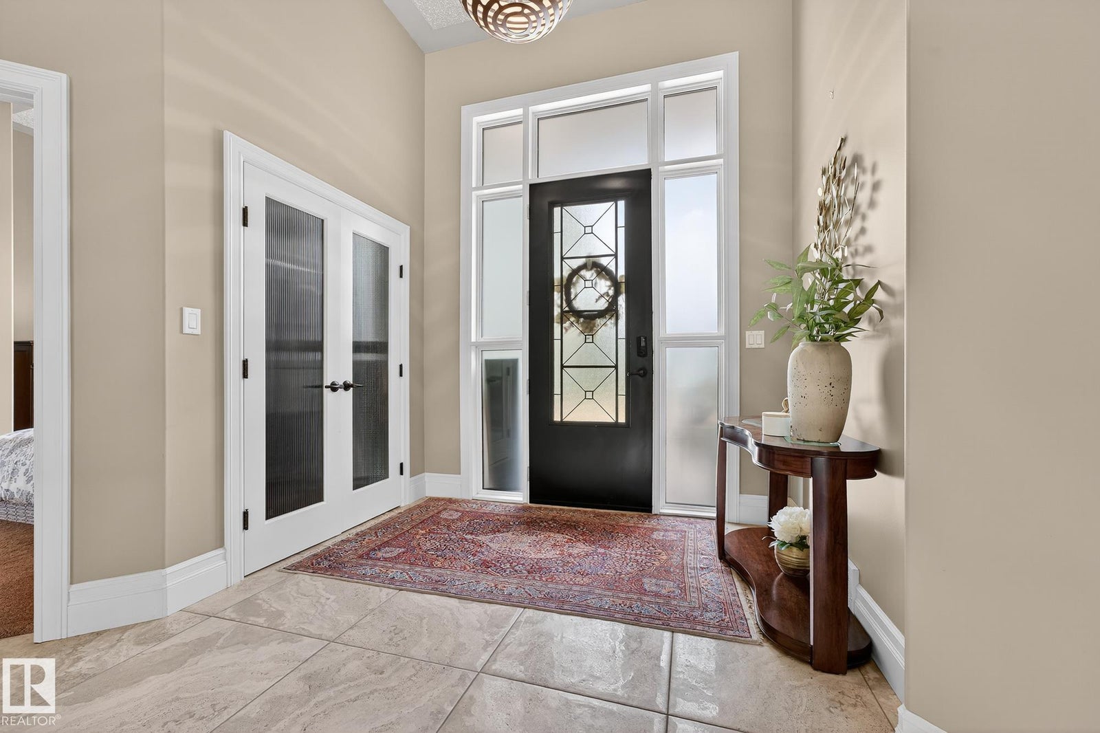 Welcome to Namao Ridge! This custom-built bungalow, situated on 1.67 acres, offers upscale living with unparalleled privacy. A dramatic curved staircase set against a stone feature wall, tray ceilings, and wall-to-wall windows elevate the open-concept main level. Enjoy a chef-inspired kitchen with rich cabinetry, granite countertops, and premium appliances, open to the living and dining areas, featuring a striking stone fireplace. The main floor includes the spacious primary suite, a second bedroom, and a formal dining room with architectural detailing. Downstairs features 3 bedrooms, a full bath, a half bath, a home gym, and a spacious rec room with room for a pool table. The show-stopping bar includes custom cabinetry, tile backsplash, and seating. A dedicated theatre room above the 4-car garage is perfect for movie nights. The 1,824sqft heated shop is finished with power, making it ideal for trades, storage, or your dream workspace. A covered patio and mature trees round out this exceptional property.
