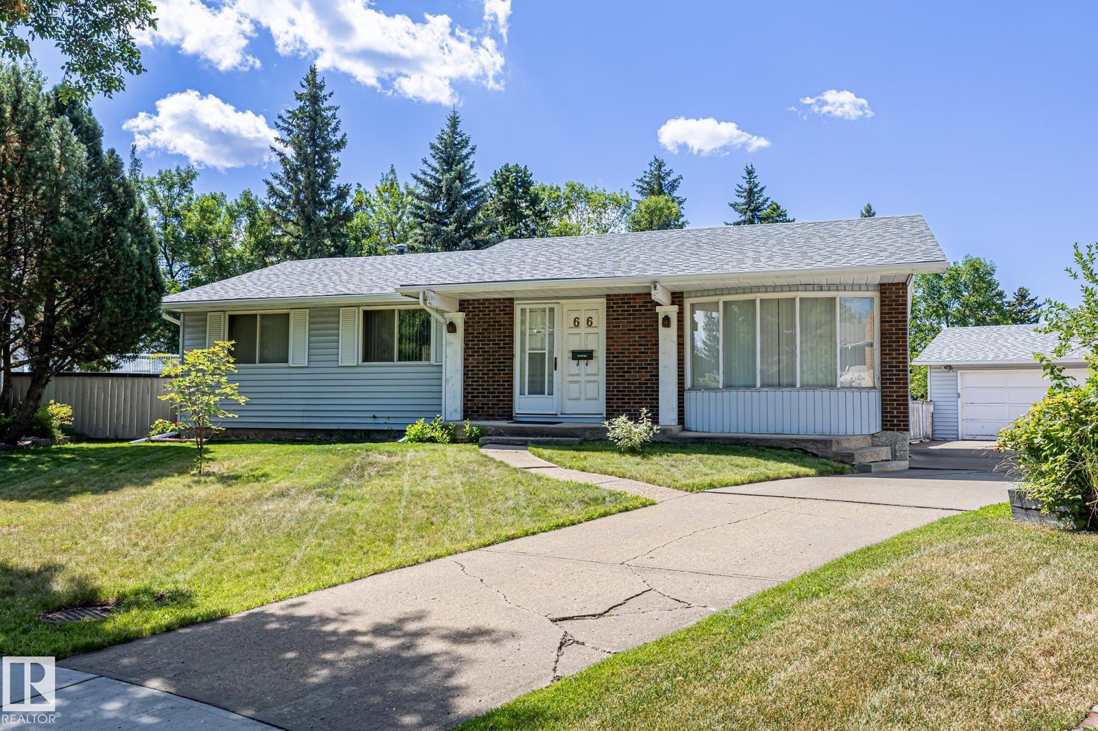Welcome to your next big adventure at 66 Greer Crescent!- live, renovate, rent! Nestled on a crescent location this expansive bungalow (it’s 1547 square feet!) is ready for a new chapter. With three bedrooms up (one down!) and a massive lot (0.27 of an acre to be exact!), this property is more than just a house; it's a blank canvas. Step inside and be greeted by a generous living & dining room space, main floor sunken family room with brick fireplace and upgraded kitchen. Generous primary suite with 3 piece ensuite and full 4 piece bathroom on the main. Lower level is a blank slate and with some love and vision could be transformed to an incredible space. Looking for an investment? Ideal for suite development! Location, location, location! You're just moments away from beautiful parks, top-notch schools and easy access to YEG. 23.3x21.7 detached garage perfect if you like to tinker. Grab your toolbelt, imagination and step into a world of endless possibilities.