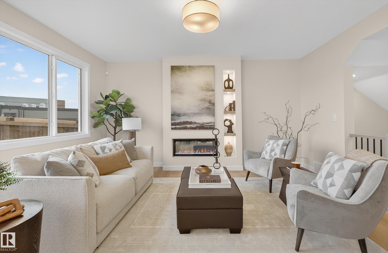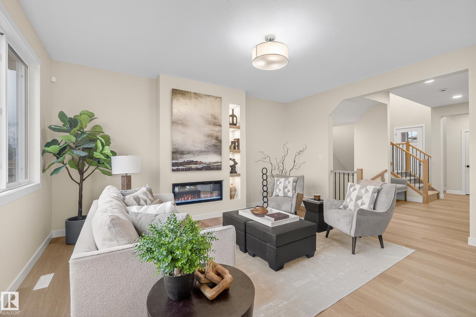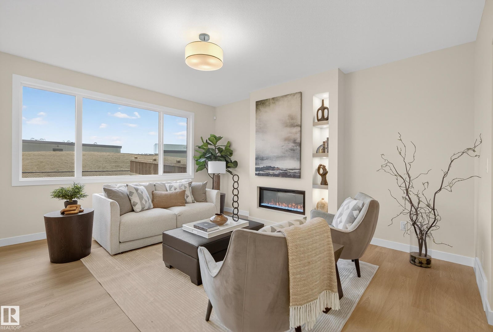 Beautiful brand new home by Legacy Signature Homes on a 34’ pocket lot, loaded with upgrades and designed for modern living. Features an attached TRIPLE garage with floor drain, open concept main floor with a den, bright living room with electric fireplace, walkthrough pantry, and a custom mudroom with built-in storage. The kitchen and dining area flow seamlessly for both everyday living and entertaining. Upstairs offers a spacious bonus room, convenient laundry, and two bedrooms with a full 4-piece bath. The impressive primary suite includes a 5-piece ensuite with freestanding tub, walk-in shower, private water closet, and generous walk-in closet. Backing onto a field, this home offers peaceful views with walking access to the local school. Ideally located close to everyday amenities and still a short drive to all that Edmonton has to offer, this home perfectly blends comfort, style, and function.