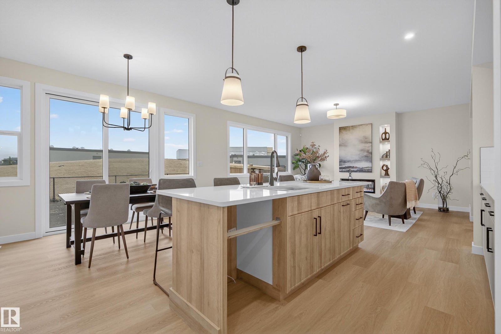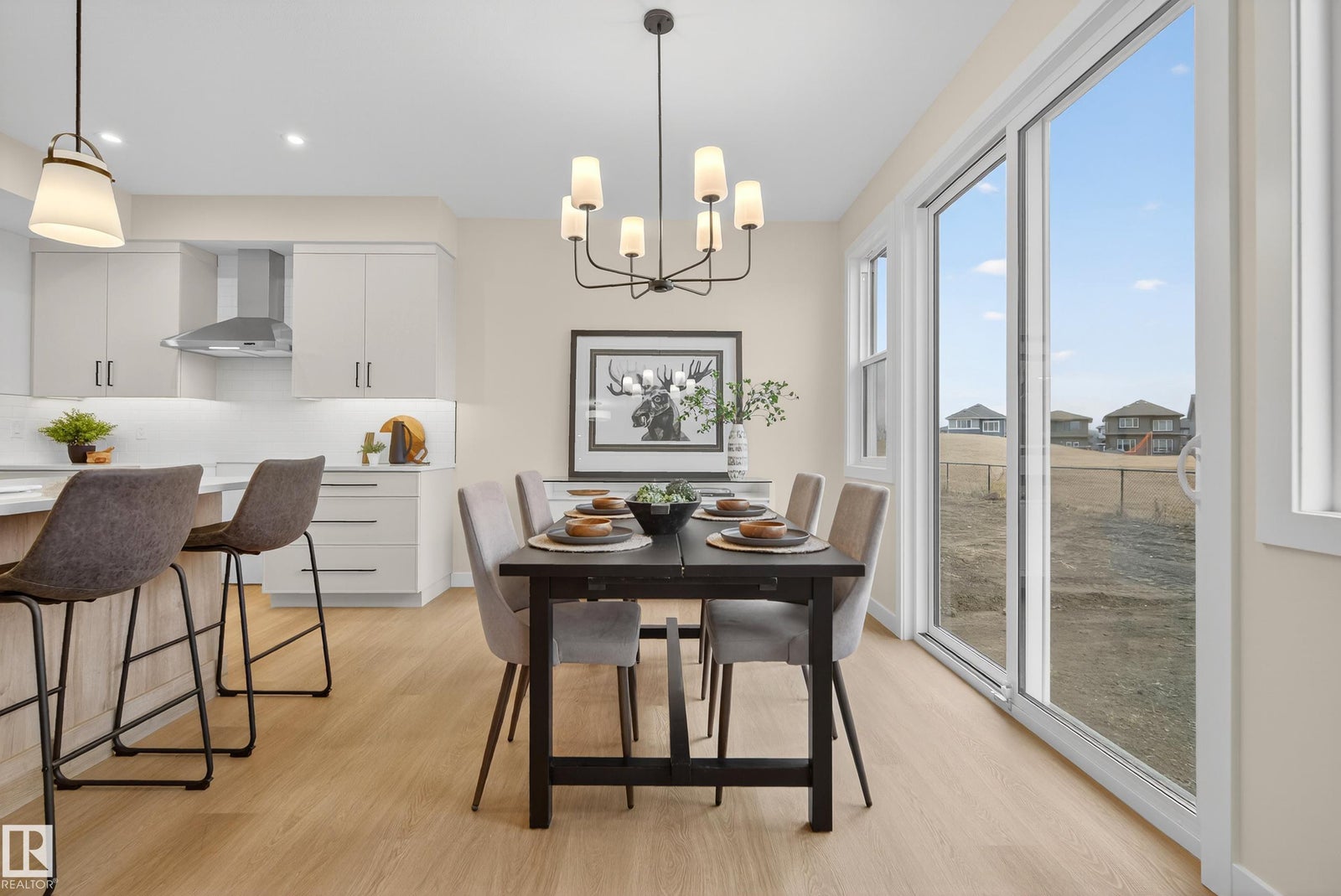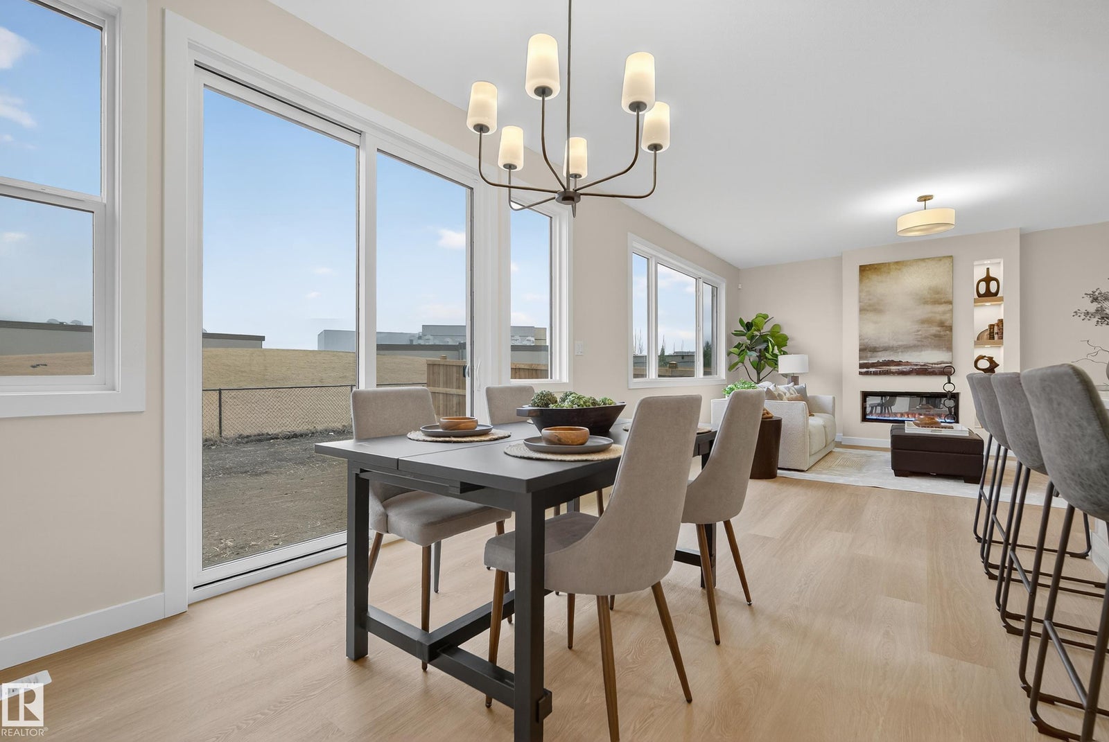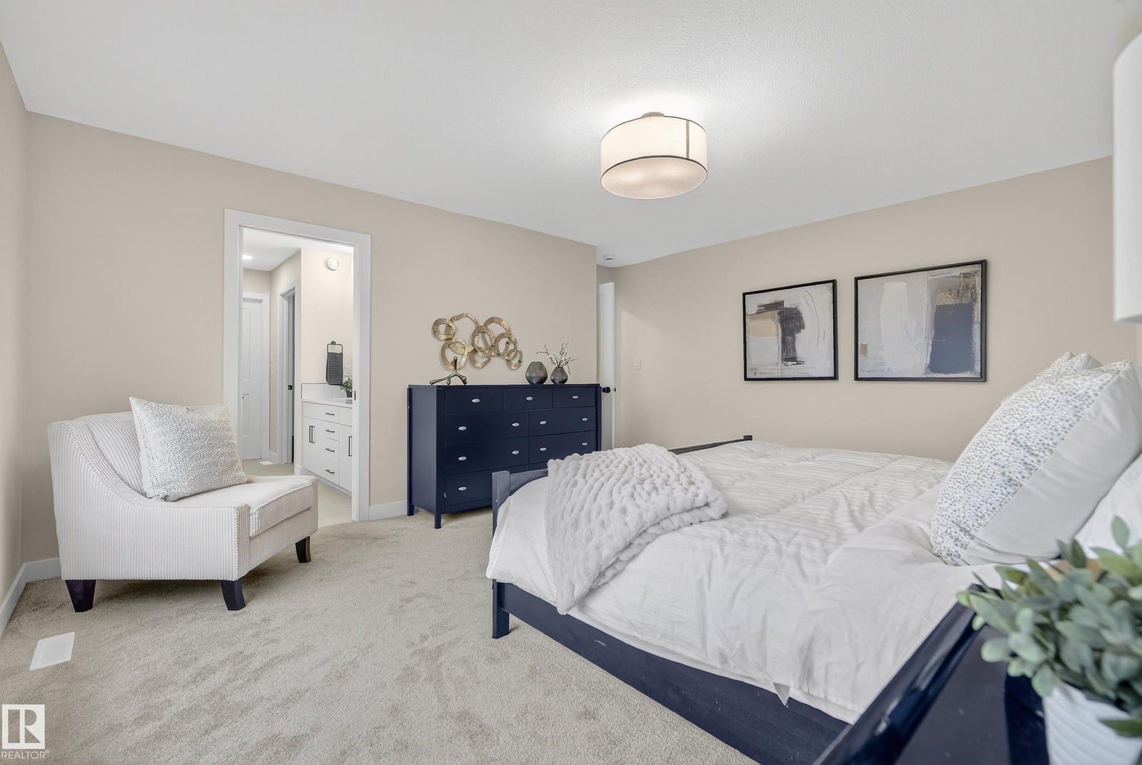 Beautiful brand new home by Legacy Signature Homes on a 34’ pocket lot, loaded with upgrades and designed for modern living. Features an attached TRIPLE garage with floor drain, open concept main floor with a den, bright living room with electric fireplace, walkthrough pantry, and a custom mudroom with built-in storage. The kitchen and dining area flow seamlessly for both everyday living and entertaining. Upstairs offers a spacious bonus room, convenient laundry, and two bedrooms with a full 4-piece bath. The impressive primary suite includes a 5-piece ensuite with freestanding tub, walk-in shower, private water closet, and generous walk-in closet. Backing onto a field, this home offers peaceful views with walking access to the local school. Ideally located close to everyday amenities and still a short drive to all that Edmonton has to offer, this home perfectly blends comfort, style, and function.