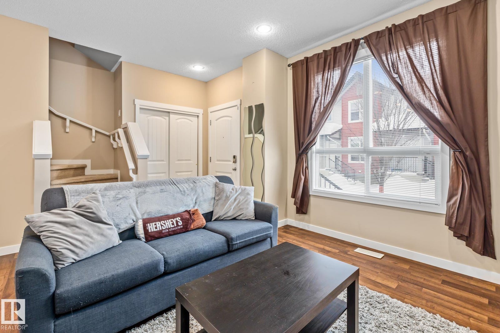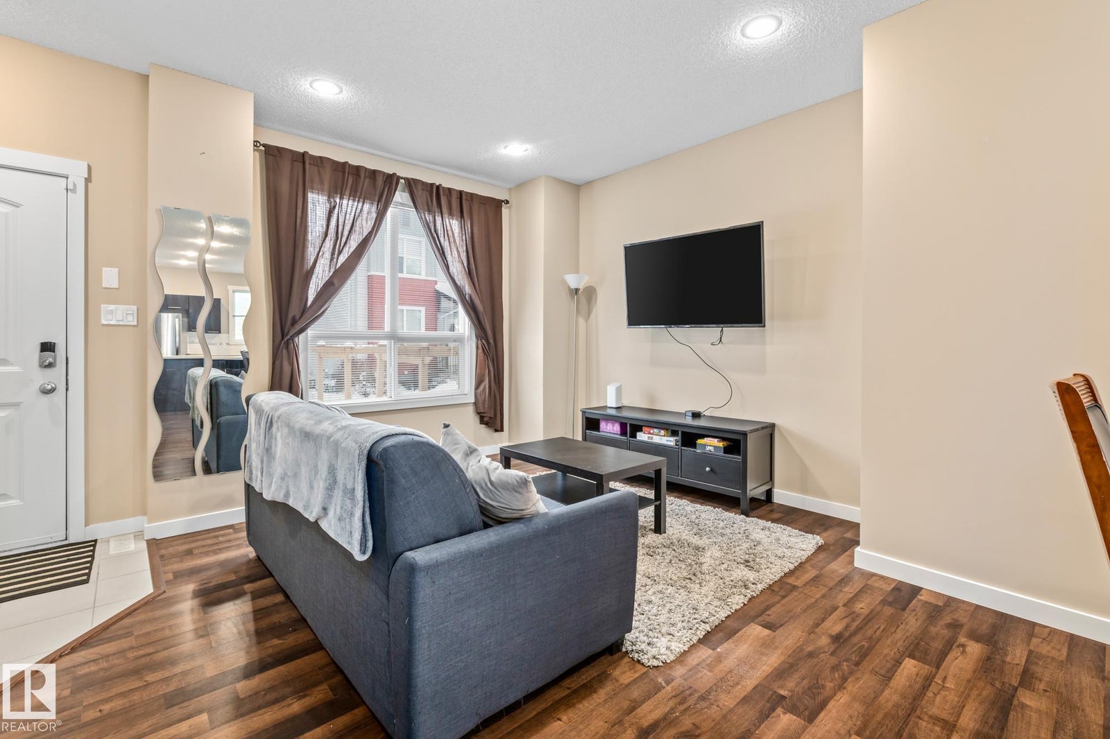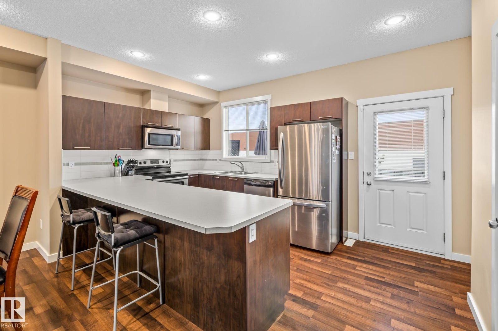 Welcome to this 3 Bedroom "End Unit" in the BRIO. Warm Laminate flooring throughout, 9 ft Ceilings and Neutral Colors will appease you. The spacious living room is open concept in to the Dining Room and Grand Kitchen. Dark Cabinets, U Shaped Kitchen, Stainless Appliances and a large Peninsula Island perfect for extra seating. Upstairs you will find 2 bedrooms plus a 4 pc bath along with a Primary Suite that has a walk in closet and an oversized 3 pc ensuite. The Basement level you will find a storage area, laundry room and furnace room. Access to your Double Garage from here as well. The Brio is within direct access to the Military Base, Anthony Henday, Shopping and many Schools