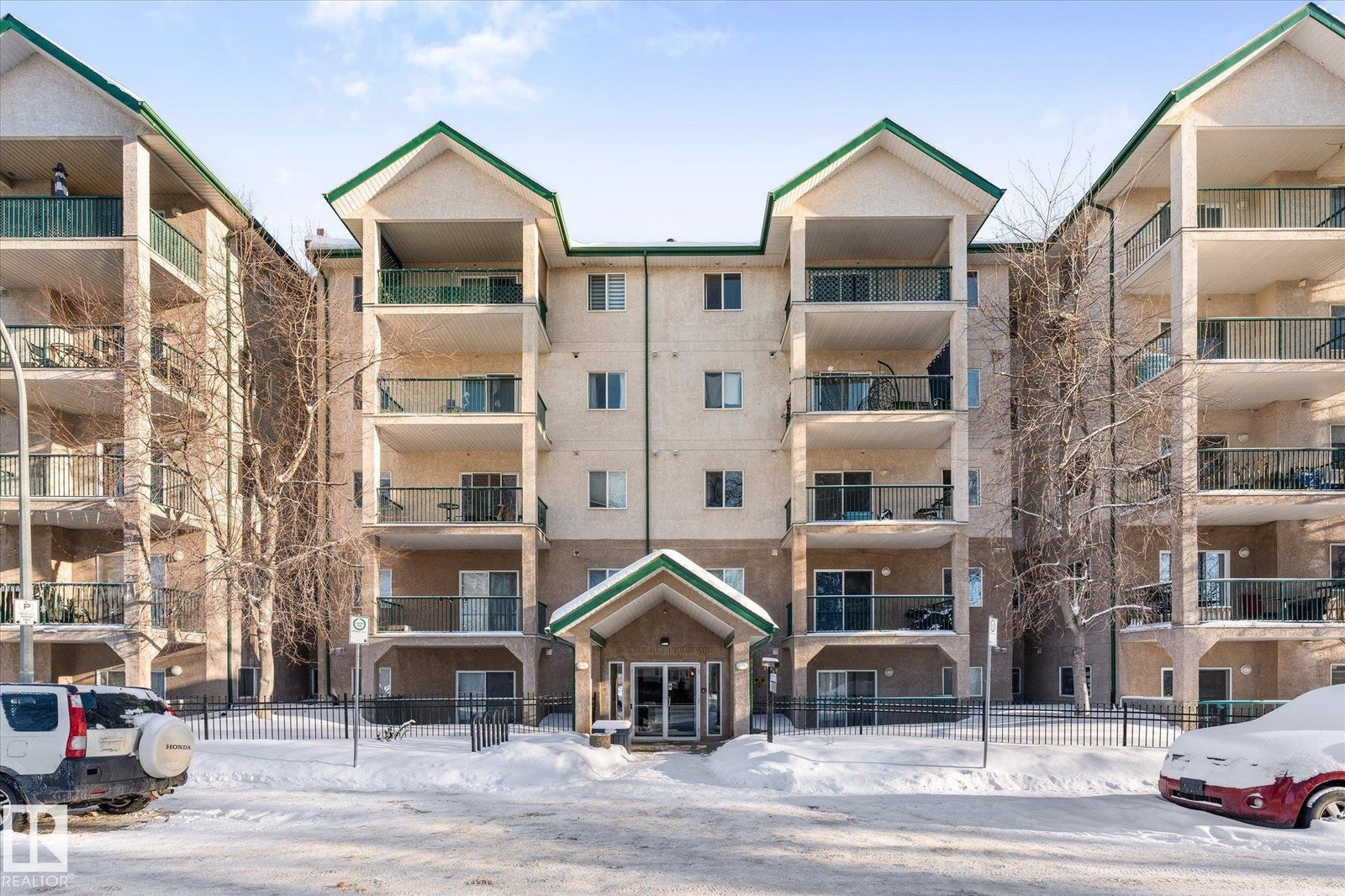TOP-FLOOR GEM IN PARKDALE! Stylish and move-in ready, this spacious 1-BEDROOM + OPEN DEN condo (potential for a second bedroom) offers 2 FULL baths, IN-SUITE LAUNDRY, and energized parking. The bright open layout showcases a modern L-shaped kitchen with NEW QUARTZ COUNTERTOPS, new carpet, and newer appliances. Both bathrooms feature upgraded quartz counters for a sleek touch. The large primary suite includes a walk-through closet and private ensuite, while the open den provides flexibility for a home office or guest space. Enjoy the quiet, SOUTHWEST-FACING BALCONY perfect for relaxing. This secure, newer built, well-managed building offers an elevator and ample visitor parking. STEPS FROM THE LRT, groceries, restaurants, coffee shops, and Commonwealth Stadium with easy access to Downtown, Rogers Place, and U of A. Low condo fees. Exceptional location, modern upgrades, and unbeatable value! *some photos virtually staged